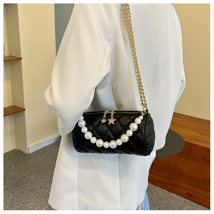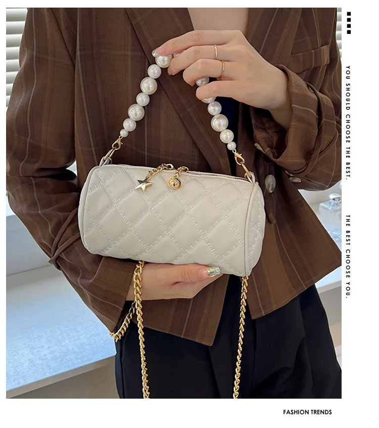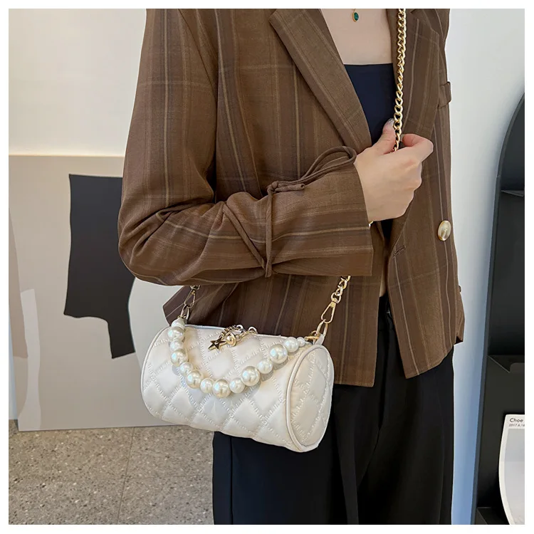 الموضة أسطواني حقائب كروسبودي ل سلسلة نسائية حزام حقيبة كتف حقائب صغيرة منقوشة بولي Leather الجلود عبر الجسم