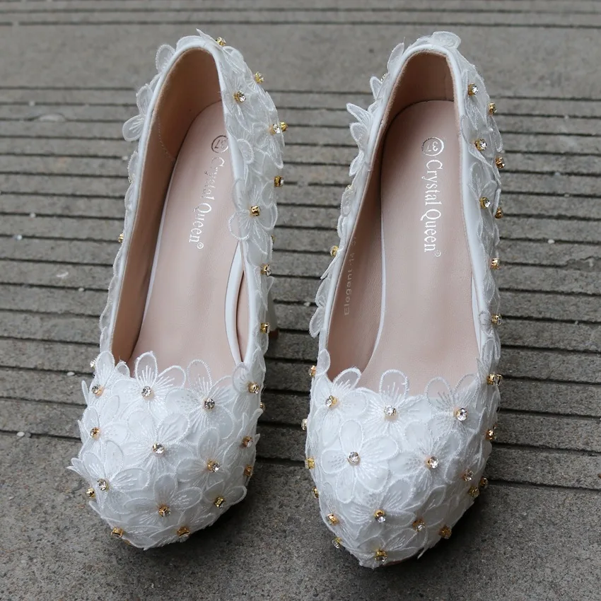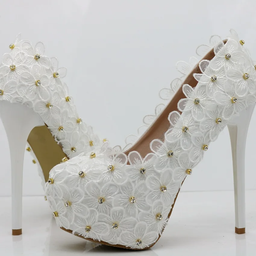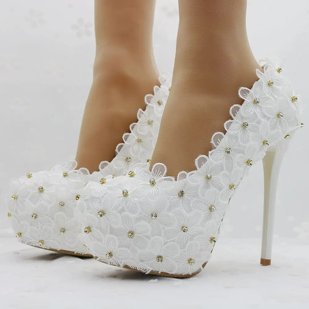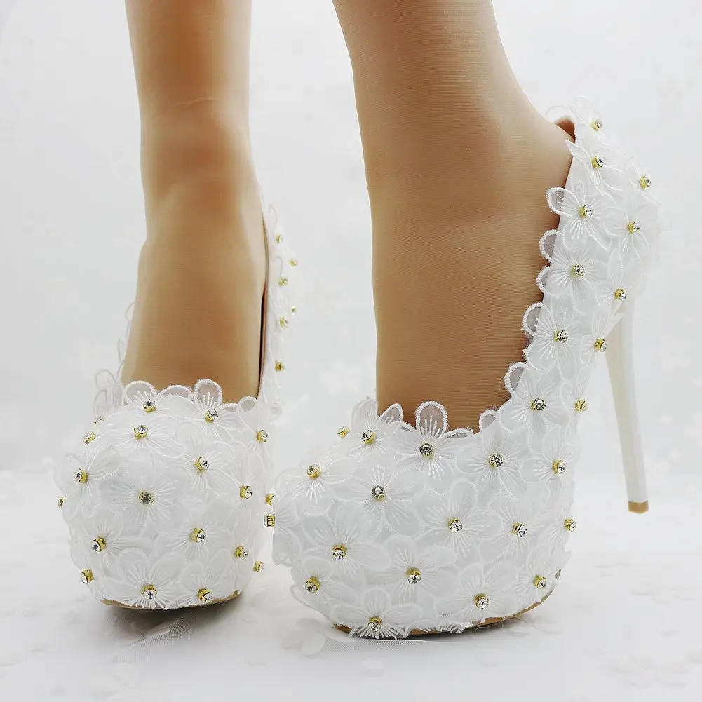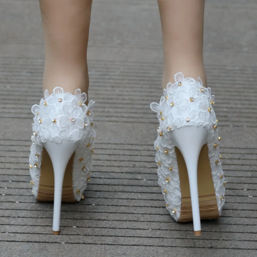 النساء أحذية مضخات فستان الدانتيل منصة مقاوم للماء جولة تو الكعوب رقيقة 14 سنتيمتر عالية الكعب المرأة أحذية الزفاف