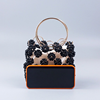 الوافدين الجدد اليدوية الكرة السوداء مطرز حقيبة يد الذهب معدن مقبض أنيق المرأة حقيبة عالية الجودة الجوف خارج مساء حقيبة مخلب
