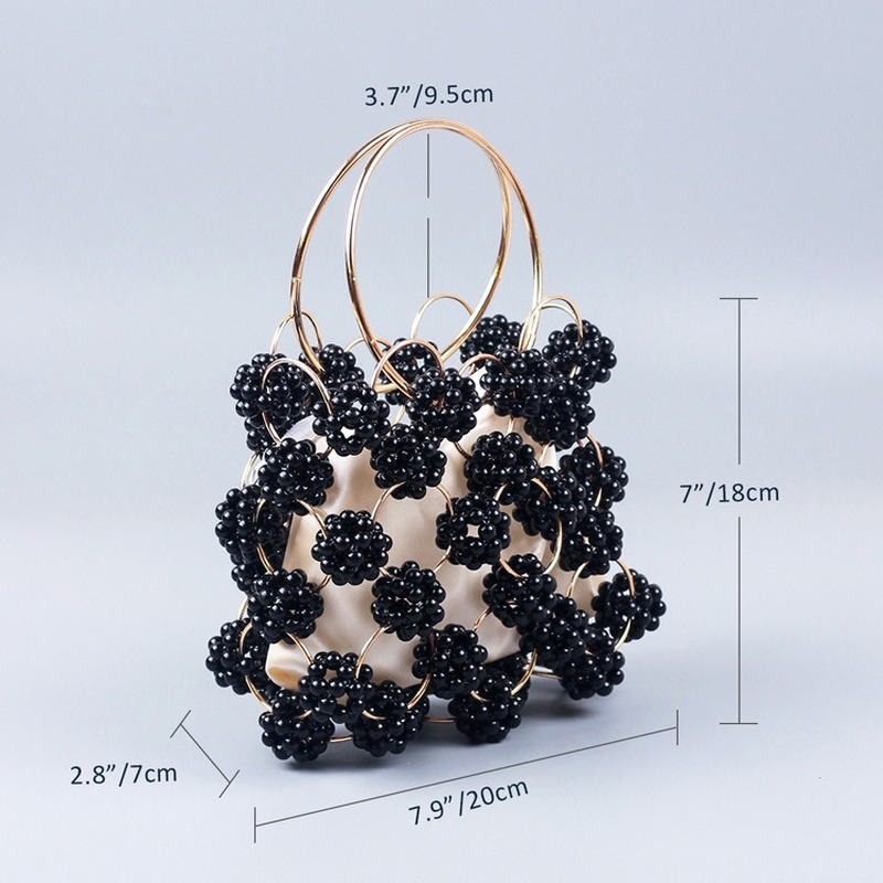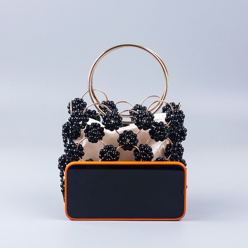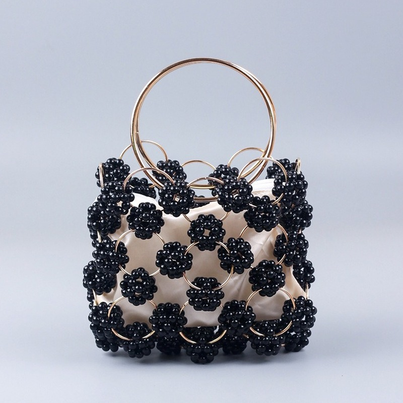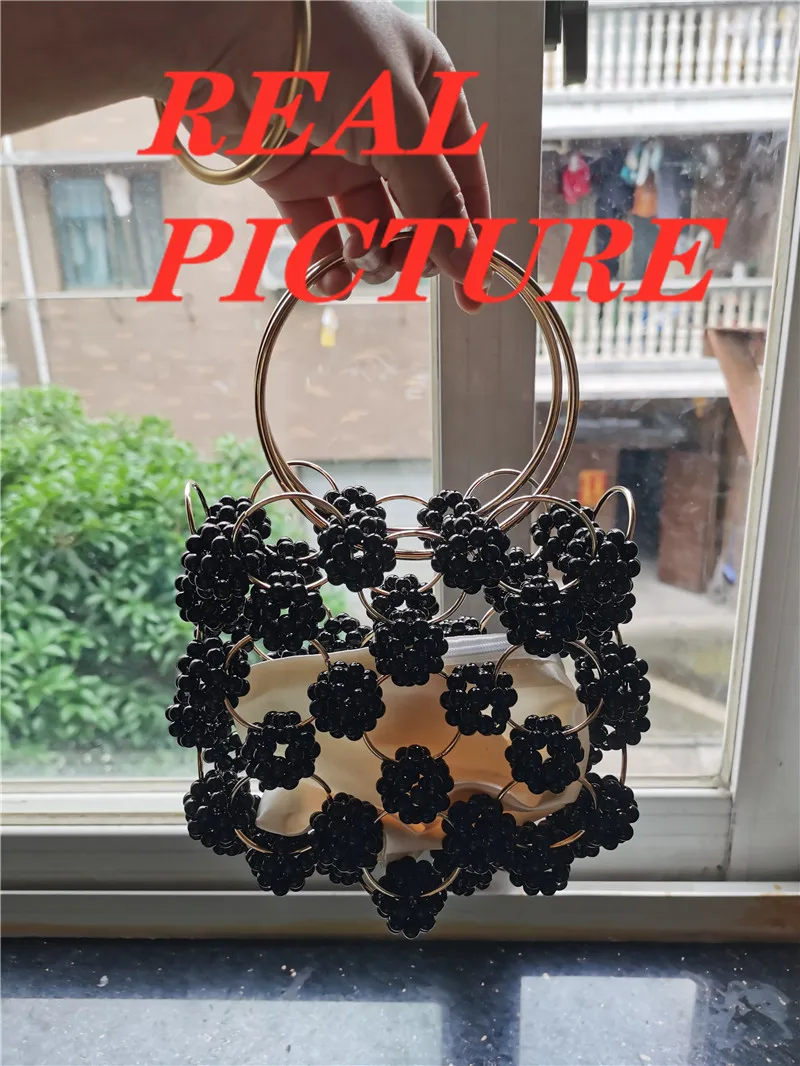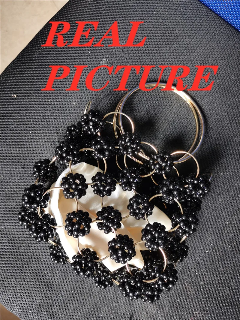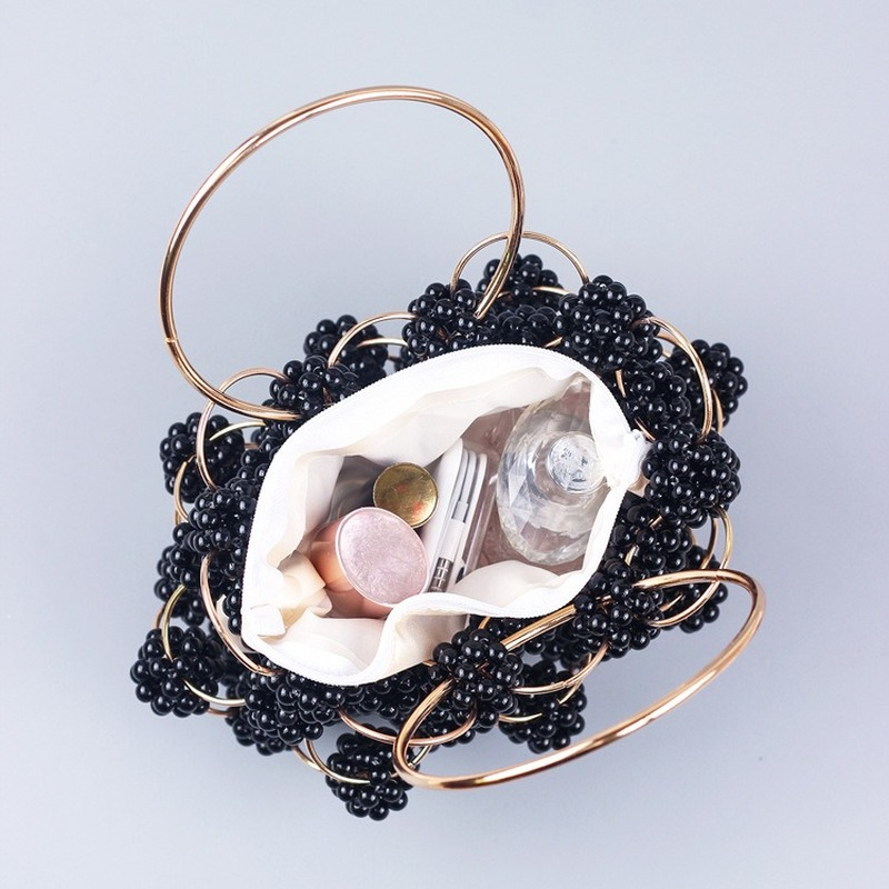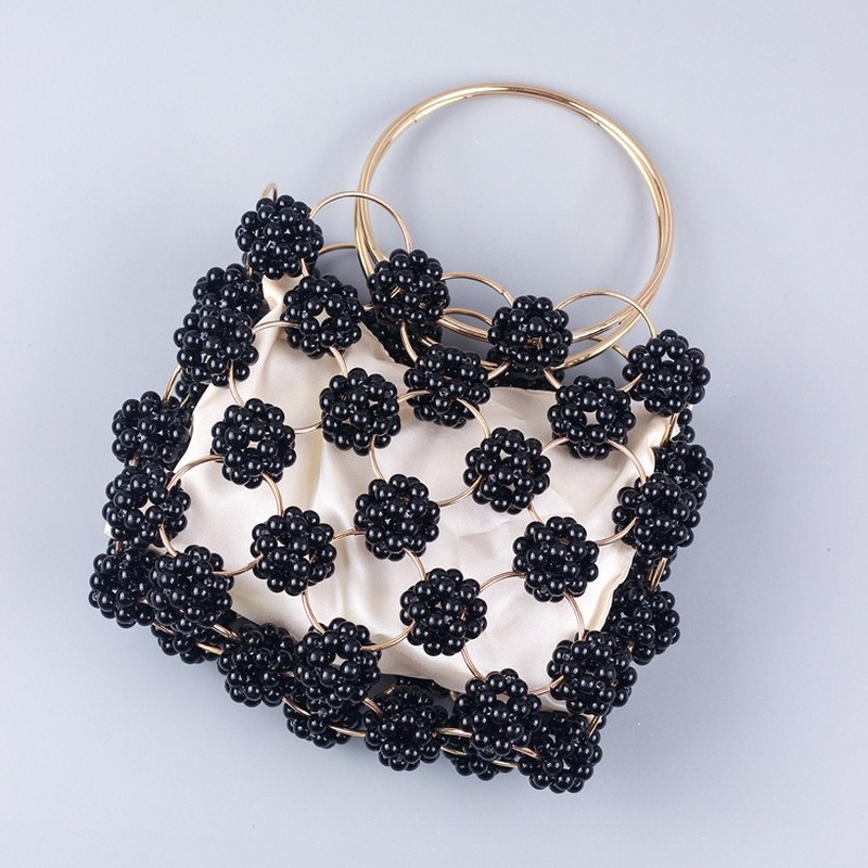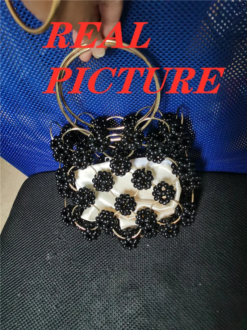 الوافدين الجدد اليدوية الكرة السوداء مطرز حقيبة يد الذهب معدن مقبض أنيق المرأة حقيبة عالية الجودة الجوف خارج مساء حقيبة مخلب