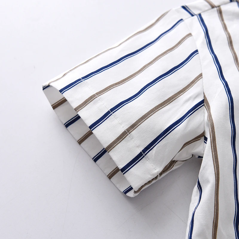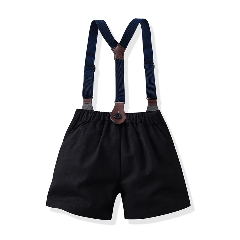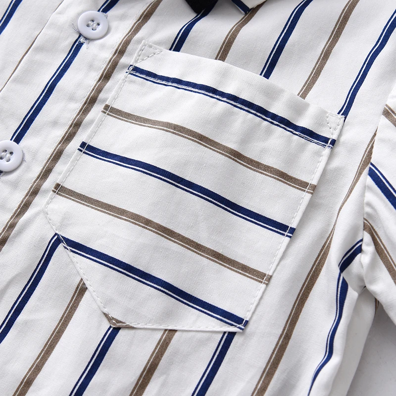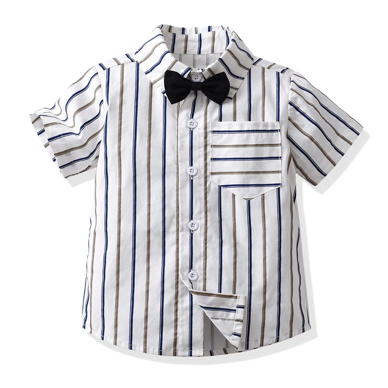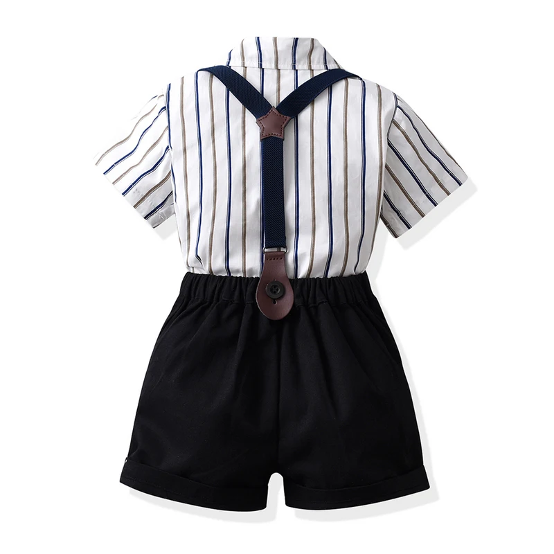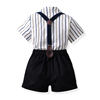 بلوزات الاطفال والاولاد مجموعة ملابس رجالية قصيرة الاكمام بووتي قميص مخطط + الحمالات القصيرة ملابس غير رسمية