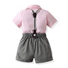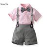 بلوزات علوية صيفية للأطفال الأولاد مجموعة ملابس رجالية للأولاد الصغار أكمام قصيرة قميص بووتي + حمالات ملابس رسمية قصيرة