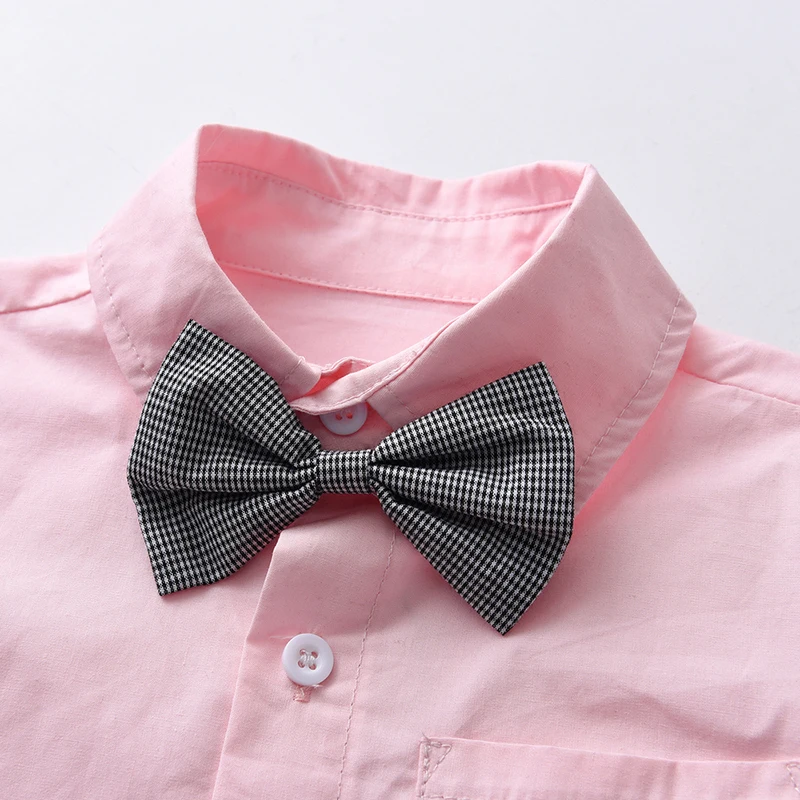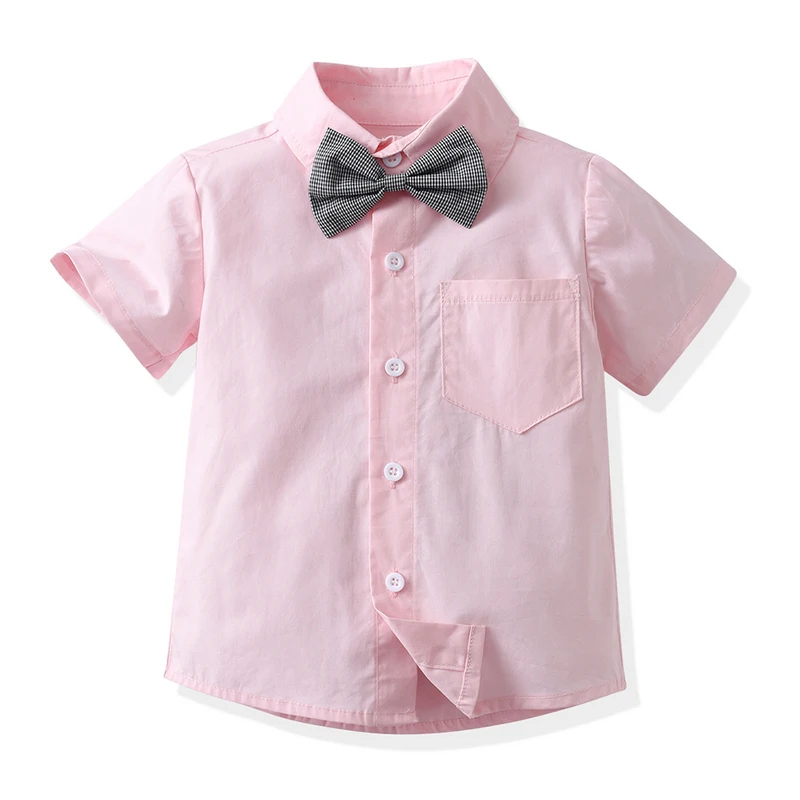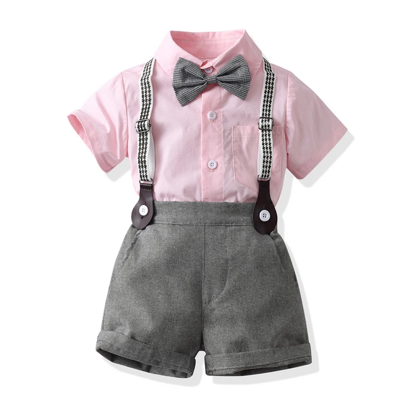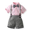 بلوزات علوية صيفية للأطفال الأولاد مجموعة ملابس رجالية للأولاد الصغار أكمام قصيرة قميص بووتي + حمالات ملابس رسمية قصيرة