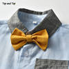 بلوزات علوية صيفية للأطفال الأولاد مجموعة ملابس رجالية قميص بأكمام قصيرة مع ربطة عنق + حمالات سراويل Bebes ملابس للخروجات اليومية