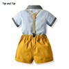 بلوزات علوية صيفية للأطفال الأولاد مجموعة ملابس رجالية قميص بأكمام قصيرة مع ربطة عنق + حمالات شورت ملابس غير رسمية