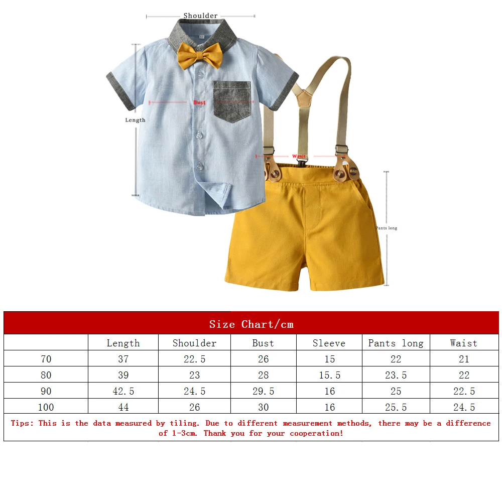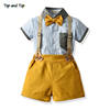 بلوزات علوية صيفية للأطفال الأولاد مجموعة ملابس رجالية قميص بأكمام قصيرة مع ربطة عنق + حمالات سراويل Bebes ملابس للخروجات اليومية