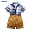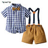 بلوزات علوية صيفية للأطفال الأولاد ملابس رجالية طقم قميص بأكمام قصيرة + حمالات شورت ملابس غير رسمية لحفلات الزفاف