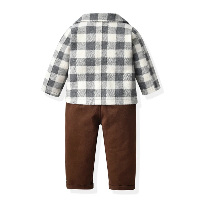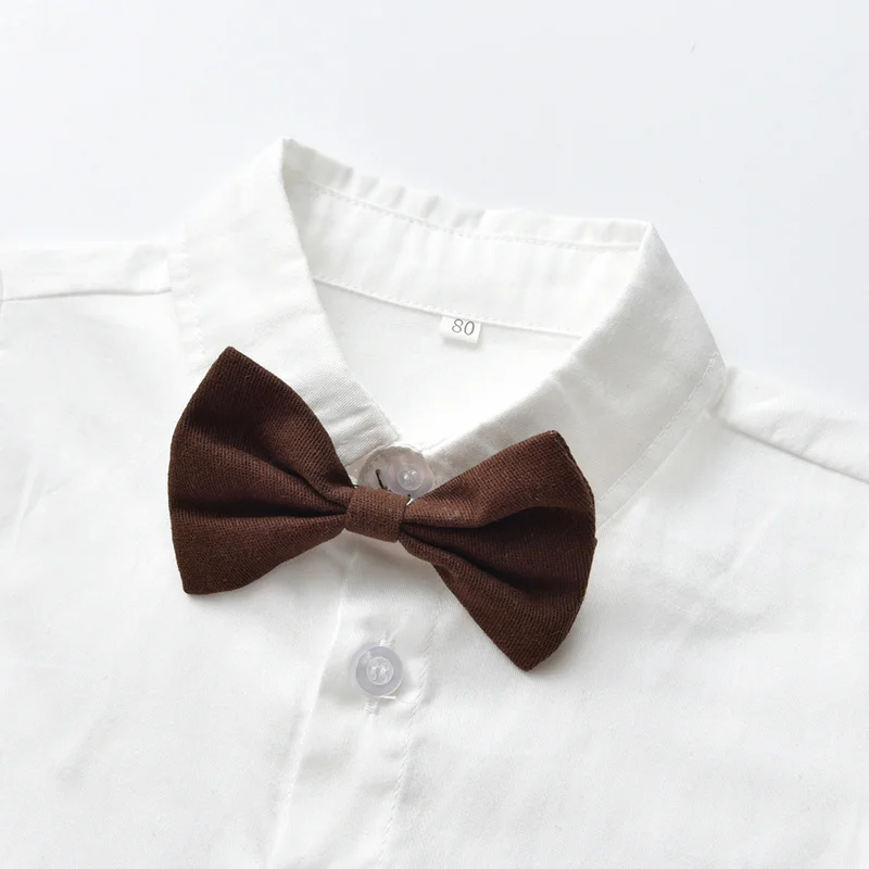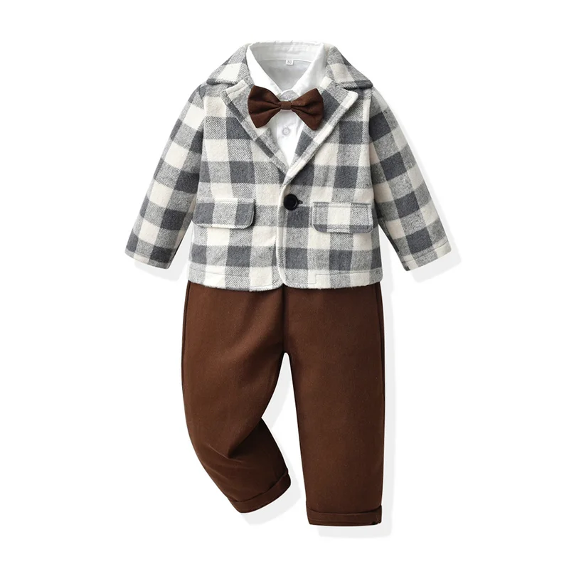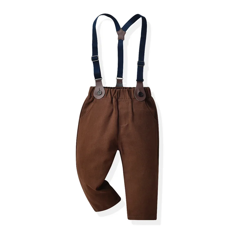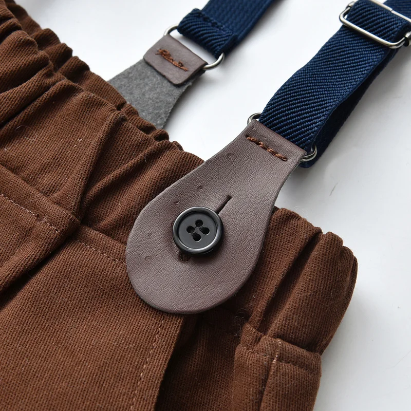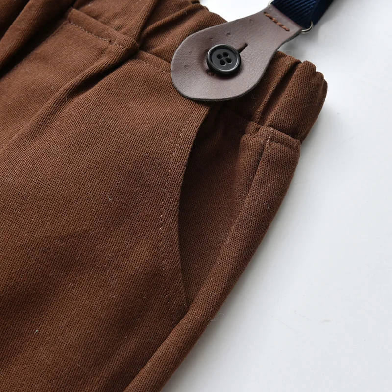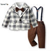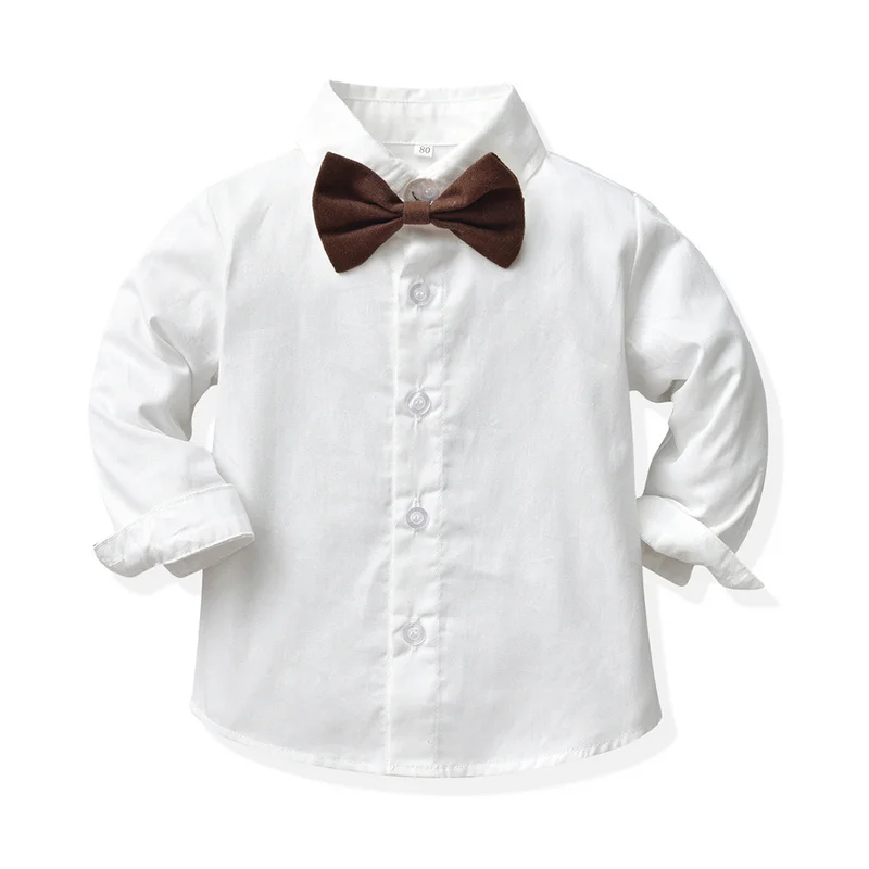 بلوزات علوية للأطفال الأولاد مجموعة ملابس شهم طفل كم طويل ابيض بووتي قمصان + منقوشة سترة & معاطف + الحمالات السراويل الدعاوى