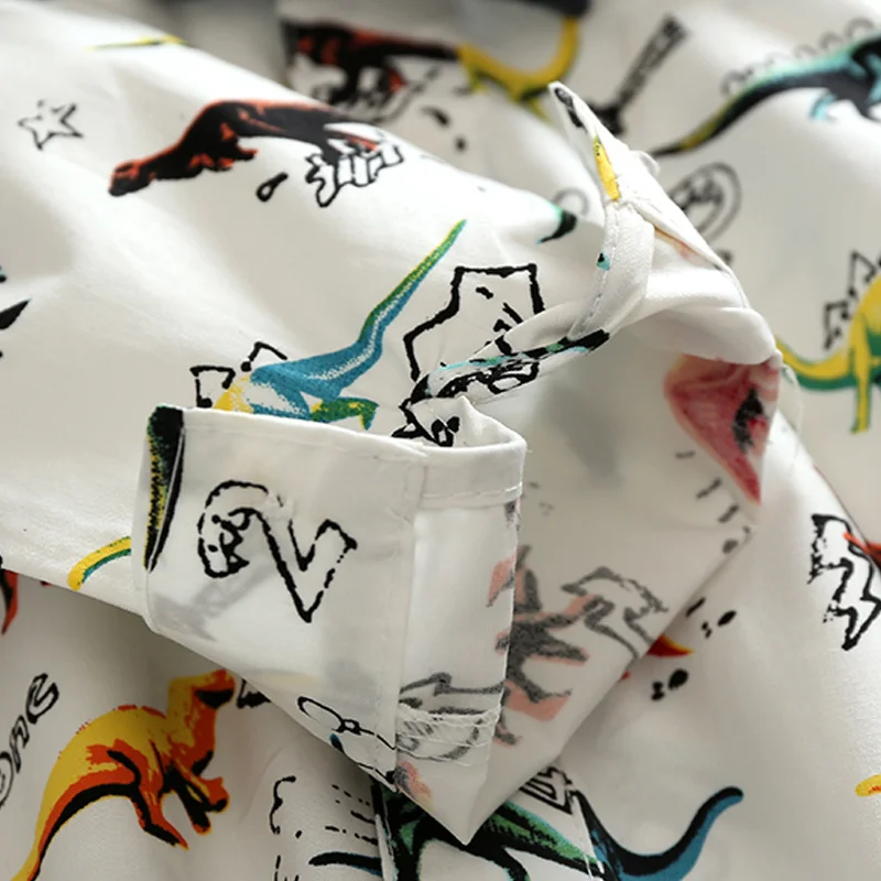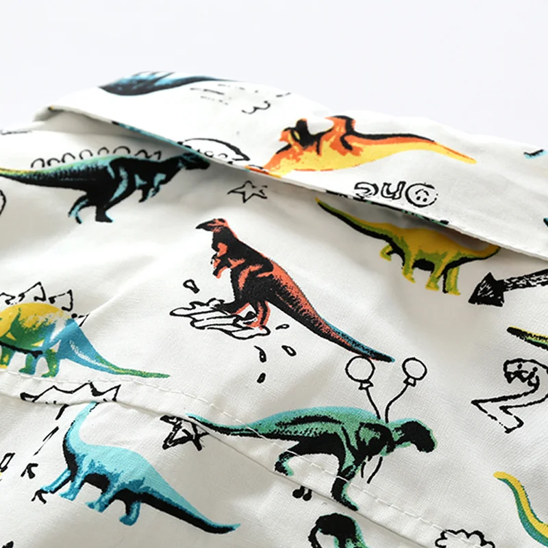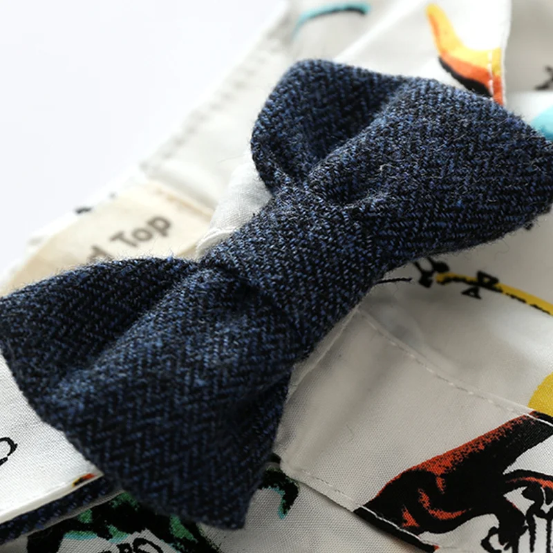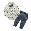 بلوزات للأطفال الصغار مجموعة ملابس رجالية طويلة الأكمام الكرتون ديناصور رومبير قمصان مع ربطة عنق + وزرة 2 قطعة ملابس غير رسمية