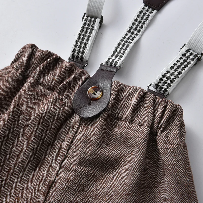 بلوزات علوية للأطفال الصغار أطقم ملابس رجالية بأكمام طويلة قمصان بيضاء بحمالات وسراويل لحفلات أعياد الميلاد وحفلات الزفاف