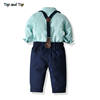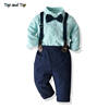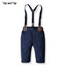 بلوزات علوية وأعلى موضة الأطفال الأولاد مجموعة ملابس مخطط ربطة قميص + الحمالات السراويل جنتلمان 2 قطعة الدعاوى الاطفال الأولاد الملابس