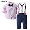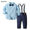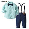 بلوزات علوية وأعلى موضة الأطفال الأولاد مجموعة ملابس مخطط ربطة قميص + الحمالات السراويل جنتلمان 2 قطعة الدعاوى الاطفال الأولاد الملابس