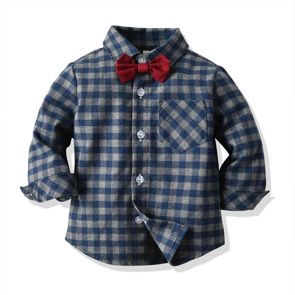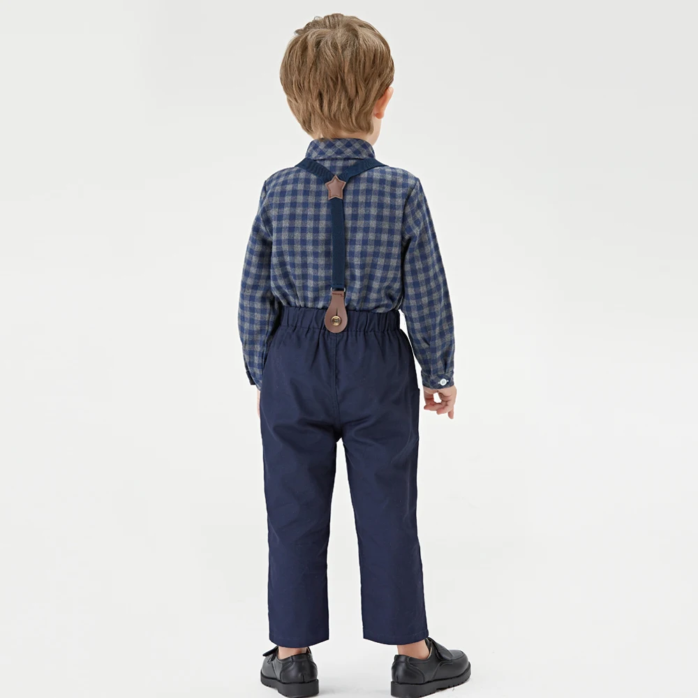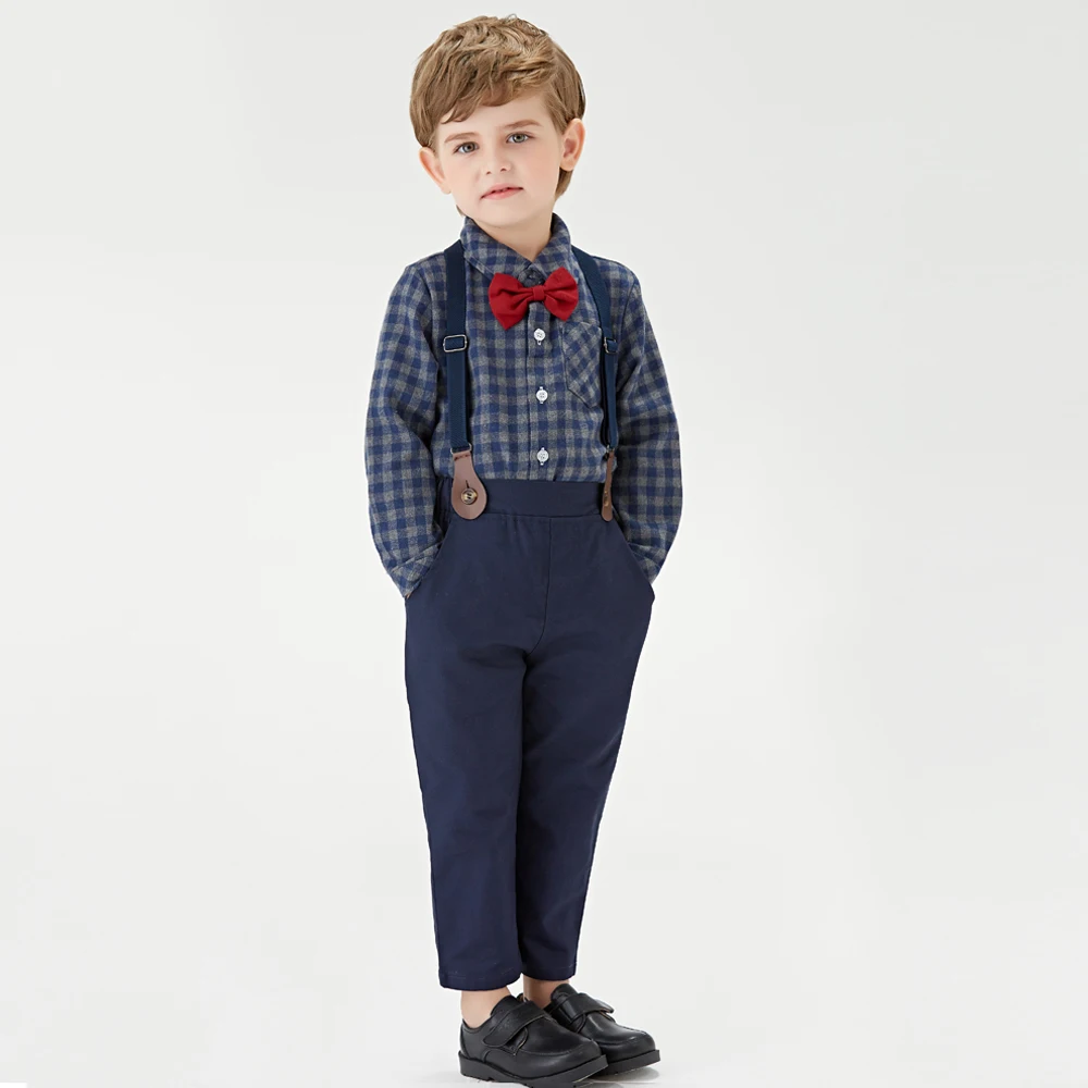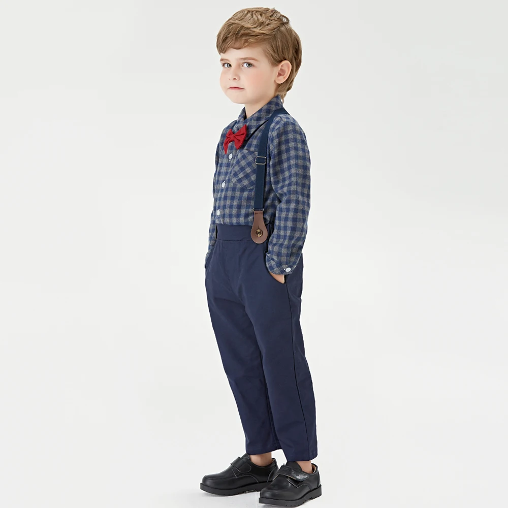 بلوزات علوية و علوية ماركة الاطفال الفتيان الملابس مجموعة قميص قطني بكم طويل بلايز + الحمالات بنطلون 2 قطعة ملابس أطفال ملابس كاجوال