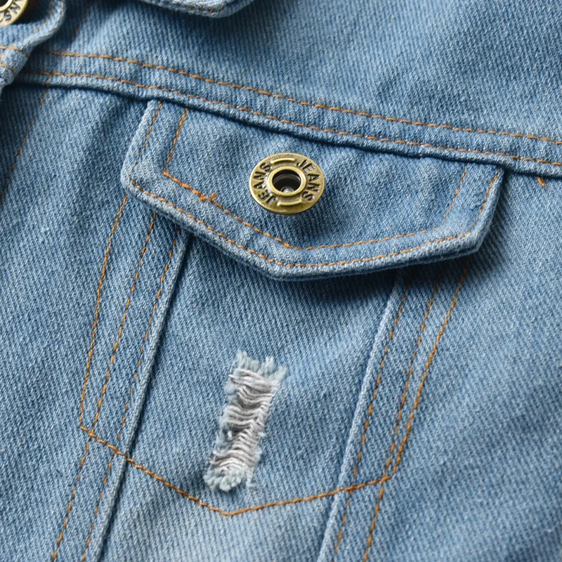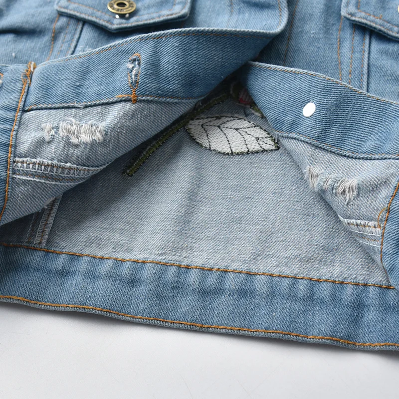 بلوزات علوية من قماش الدنيم الممزق للفتيات الصغيرات لفصل الربيع والخريف ملابس أطفال عصرية مطرزة للأطفال الصغار معاطف خارجية للأولاد