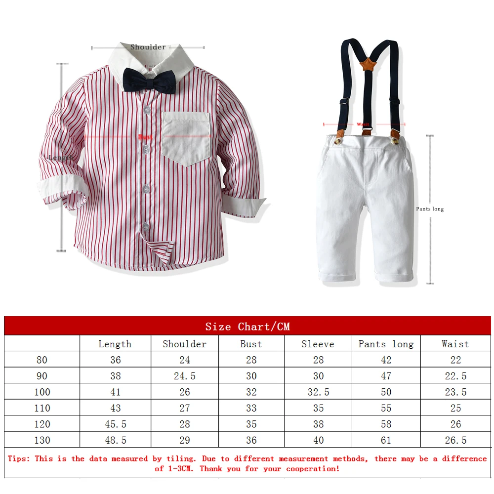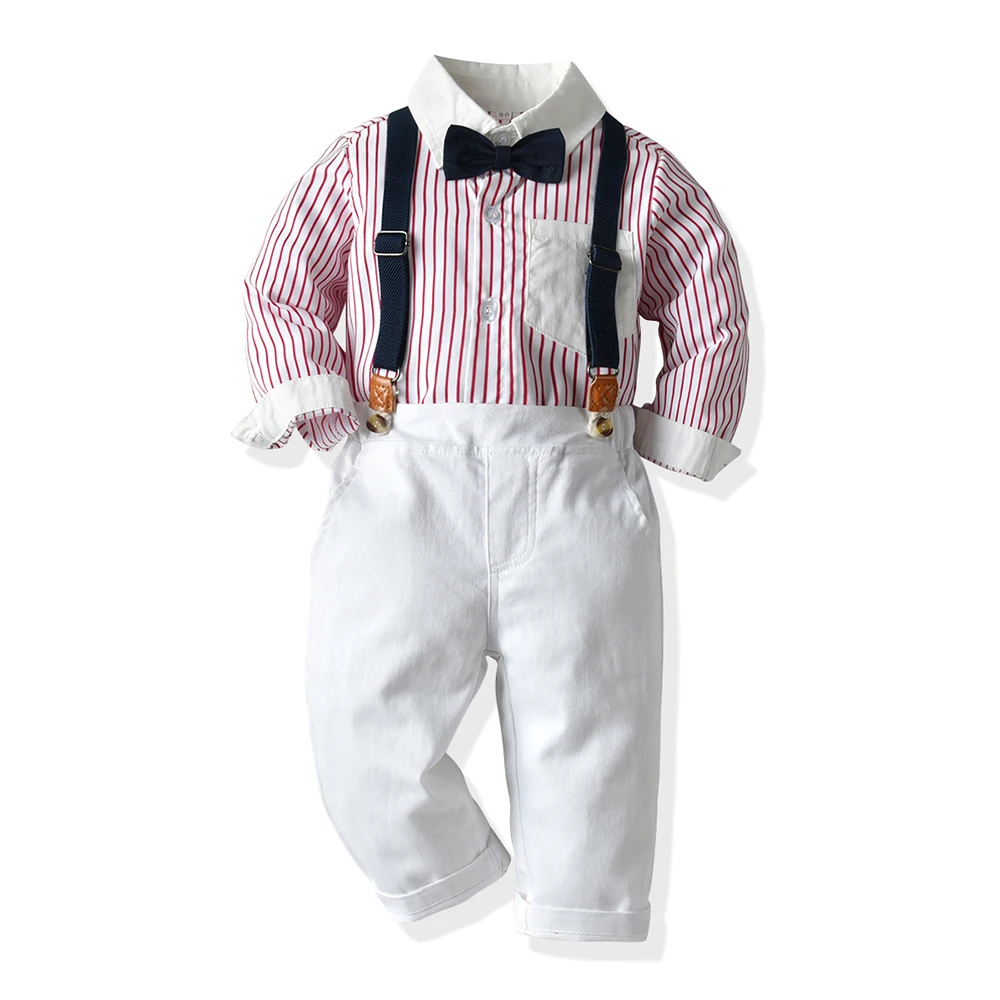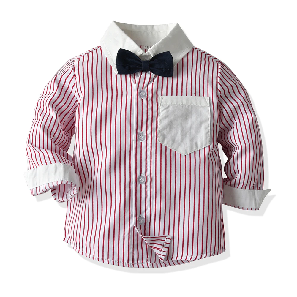 بلوزات وأعلى موضة الأولاد مخطط مجموعة ملابس ربطة القوس فيونكة قمصان طويلة الأكمام + وزرة أطفال جنتلمان ملابس ملابس تنكرية للحفلات اليومية