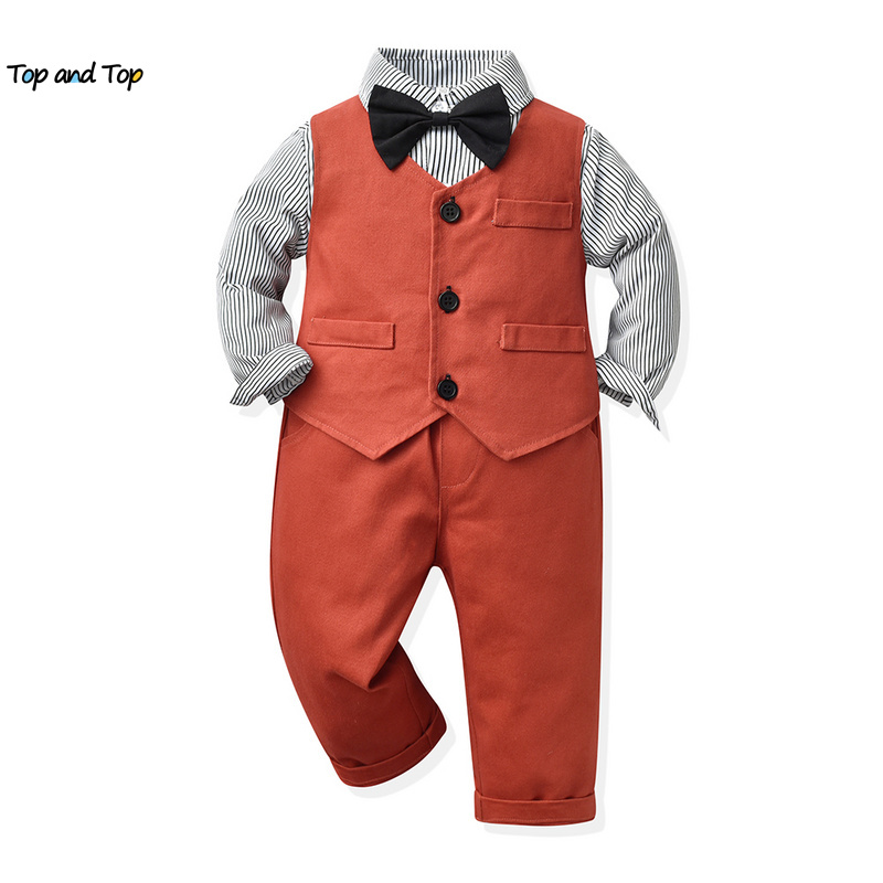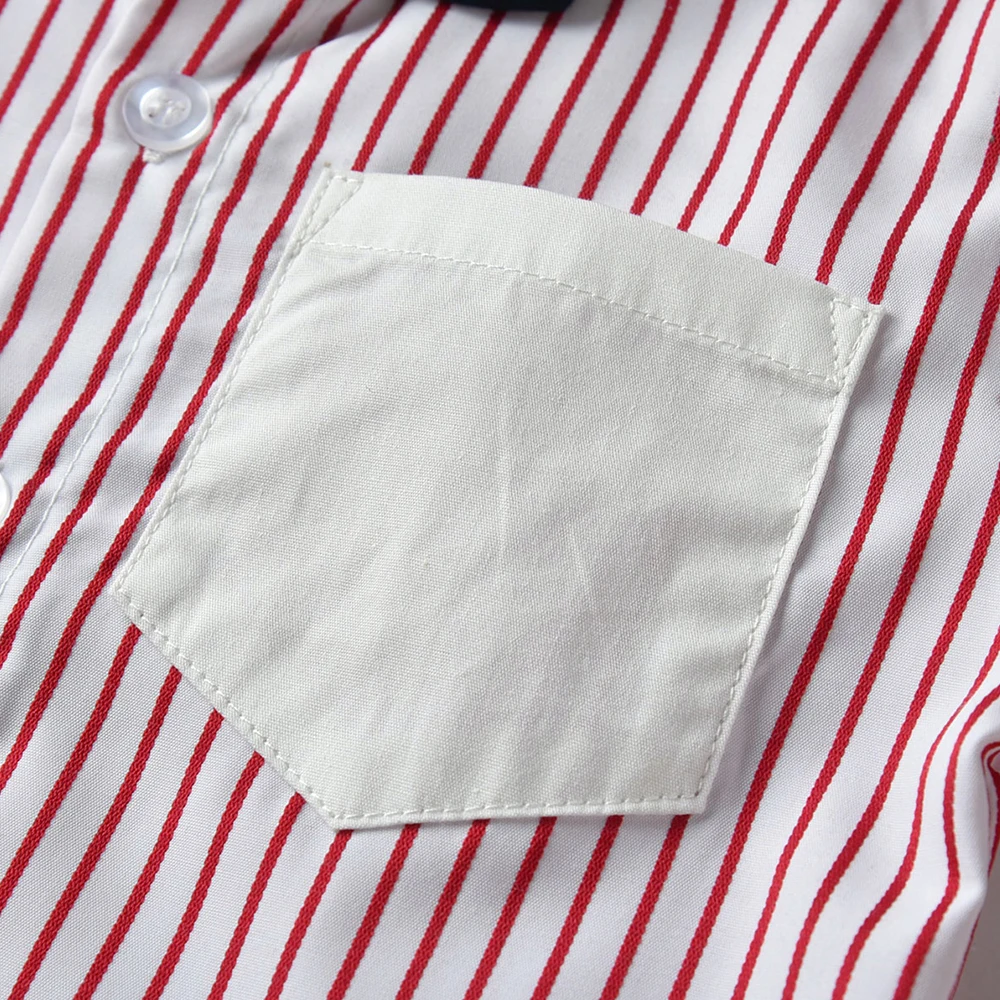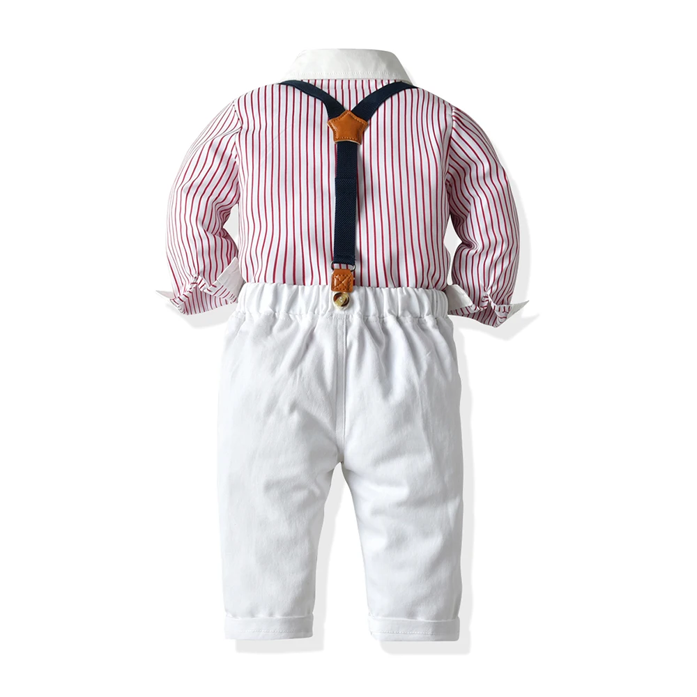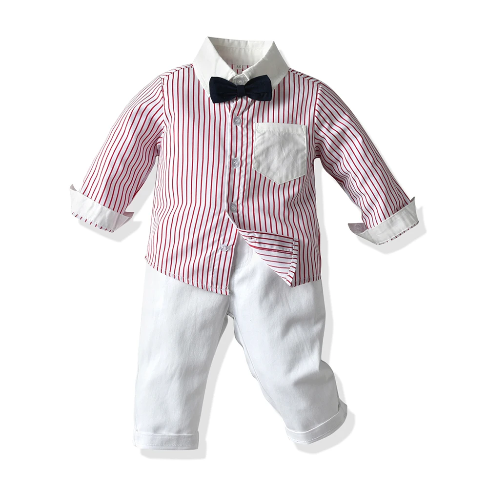بلوزات وأعلى موضة الأولاد مخطط مجموعة ملابس ربطة القوس فيونكة قمصان طويلة الأكمام + وزرة أطفال جنتلمان ملابس ملابس تنكرية للحفلات اليومية