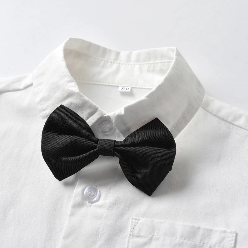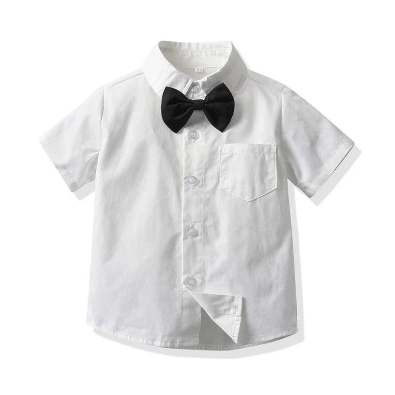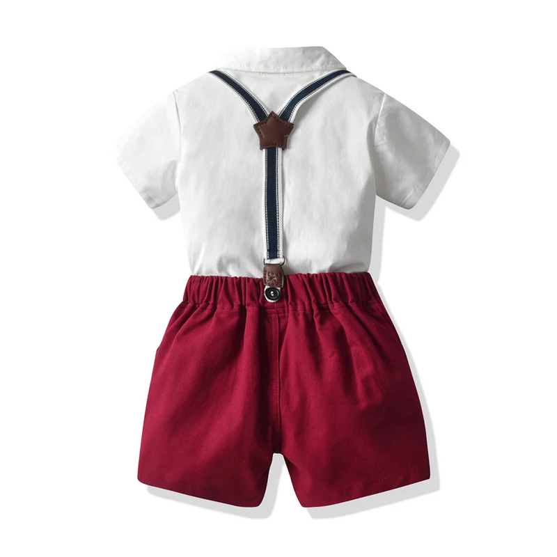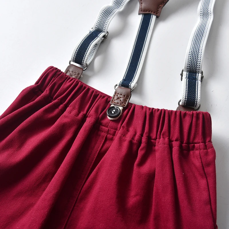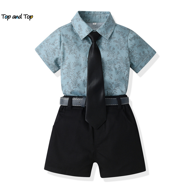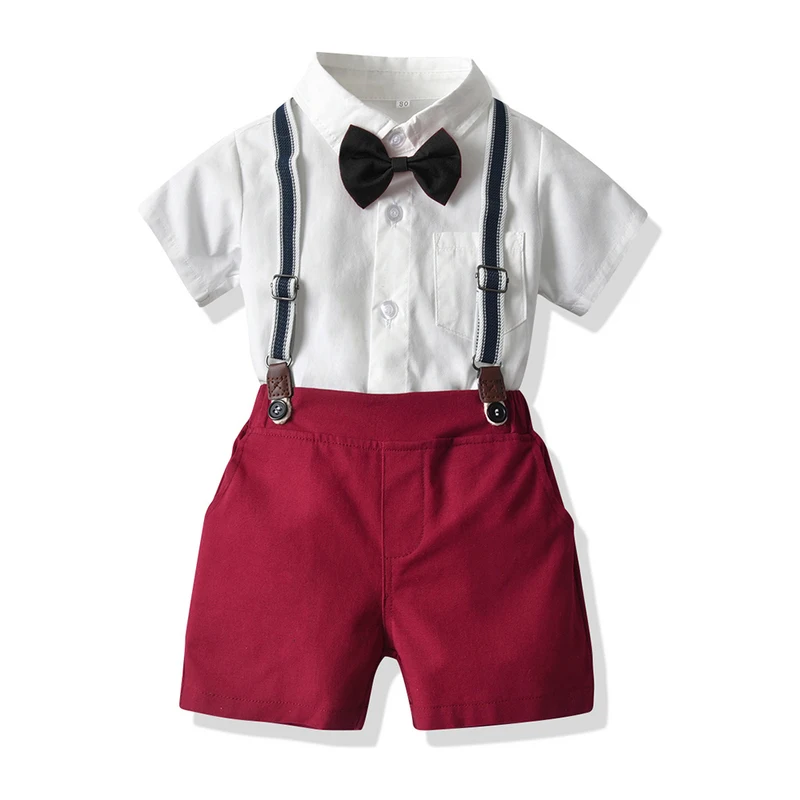بلوزات وأعلى موضة الاطفال الفتيان شهم مجموعة ملابس الأطفال الصبي شهم قصيرة الأكمام ربطة قميص الحمالات السراويل الملابس