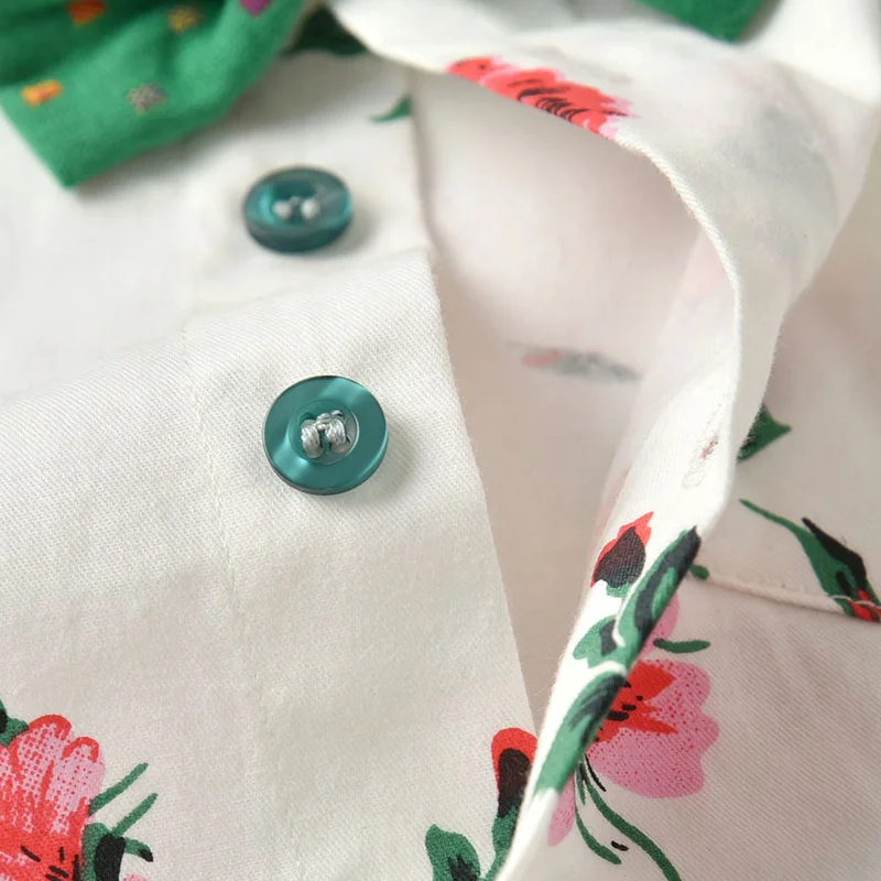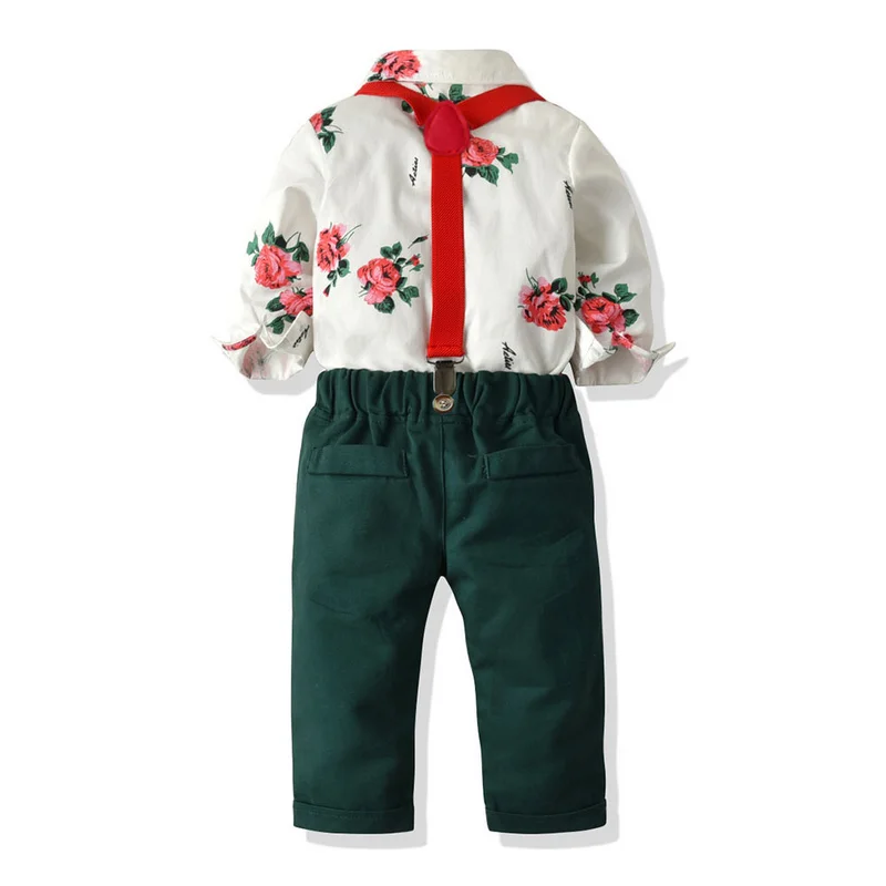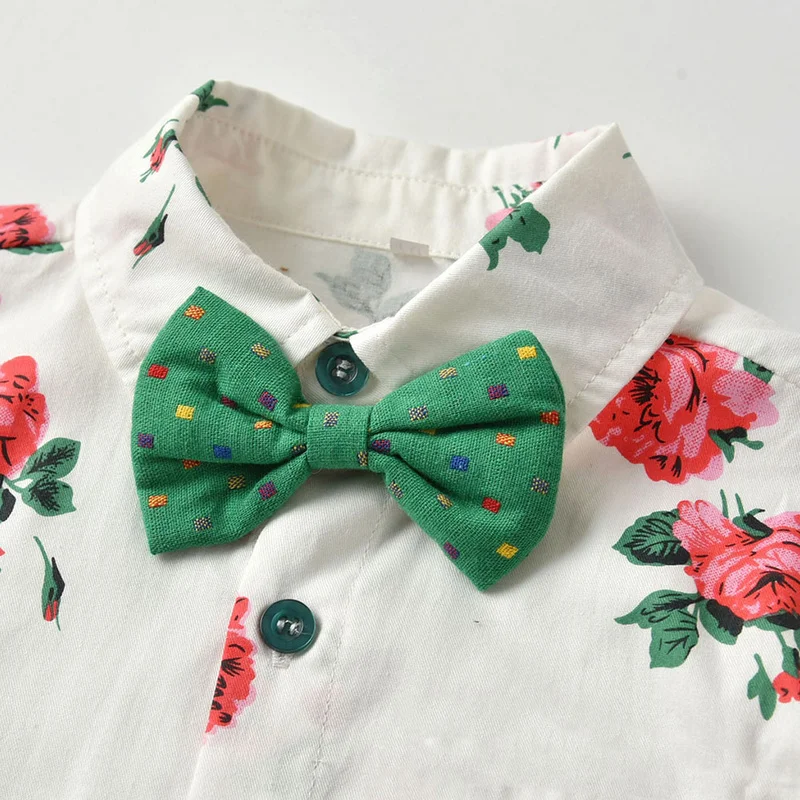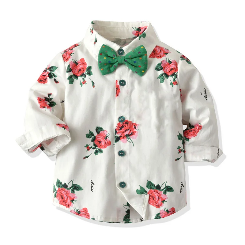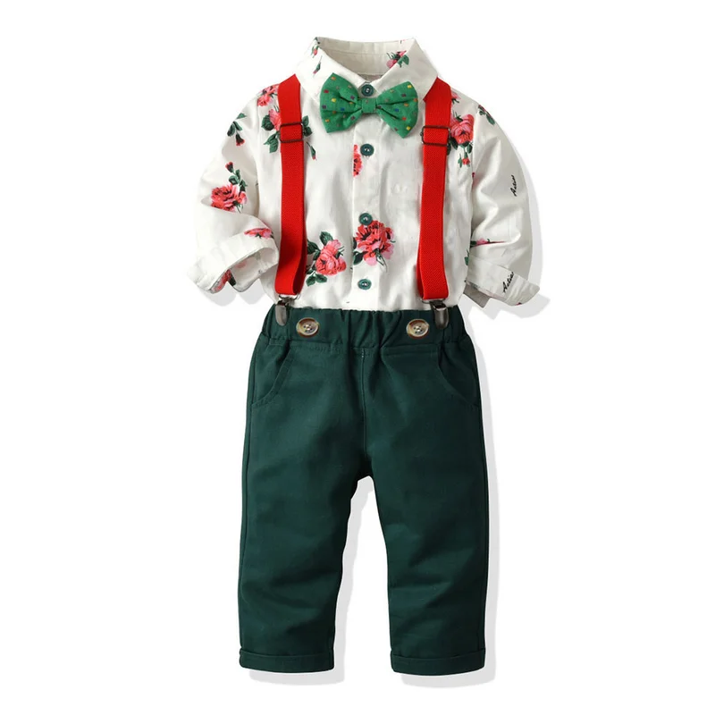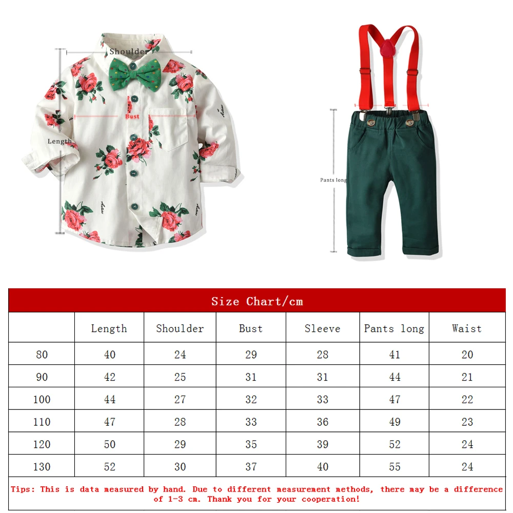 بلوزات وأعلى موضة جديدة للأطفال الأولاد ملابس رجالية مجموعات طويلة الأكمام الأزهار قمصان غير رسمية مع ربطة العنق + الحمالات السراويل وتتسابق
