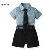 بلوزات وأعلى موضة صيفية للأطفال الأولاد ملابس رجالية مجموعات قمصان قصيرة الأكمام مطبوعة مع ربطة عنق + حزام السراويل الصبي الدعاوى الرسمية