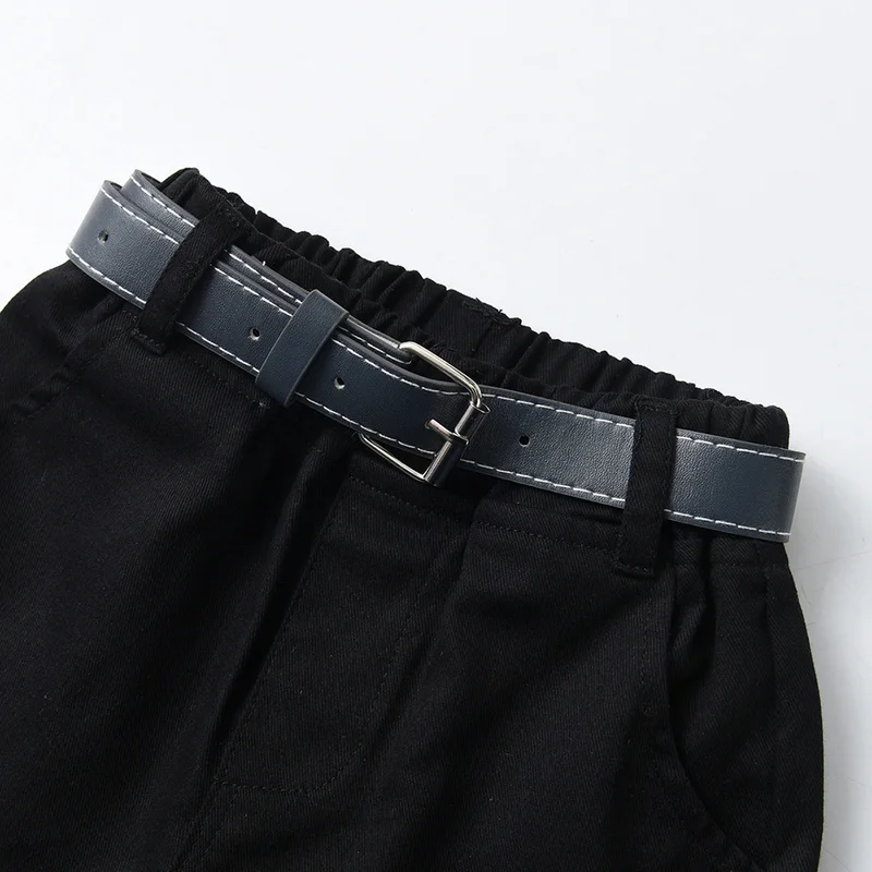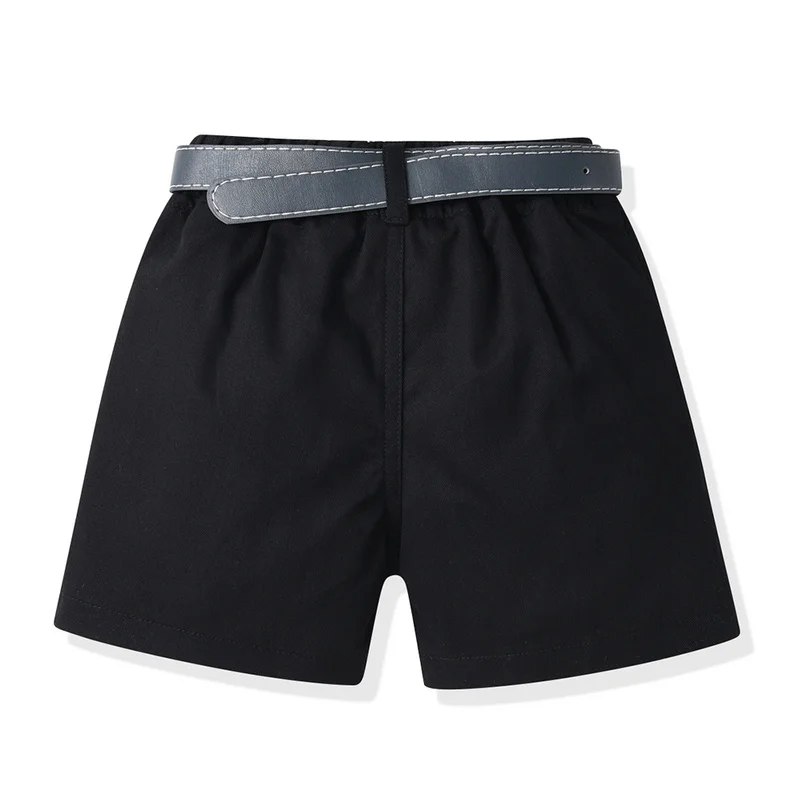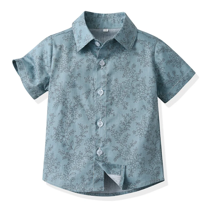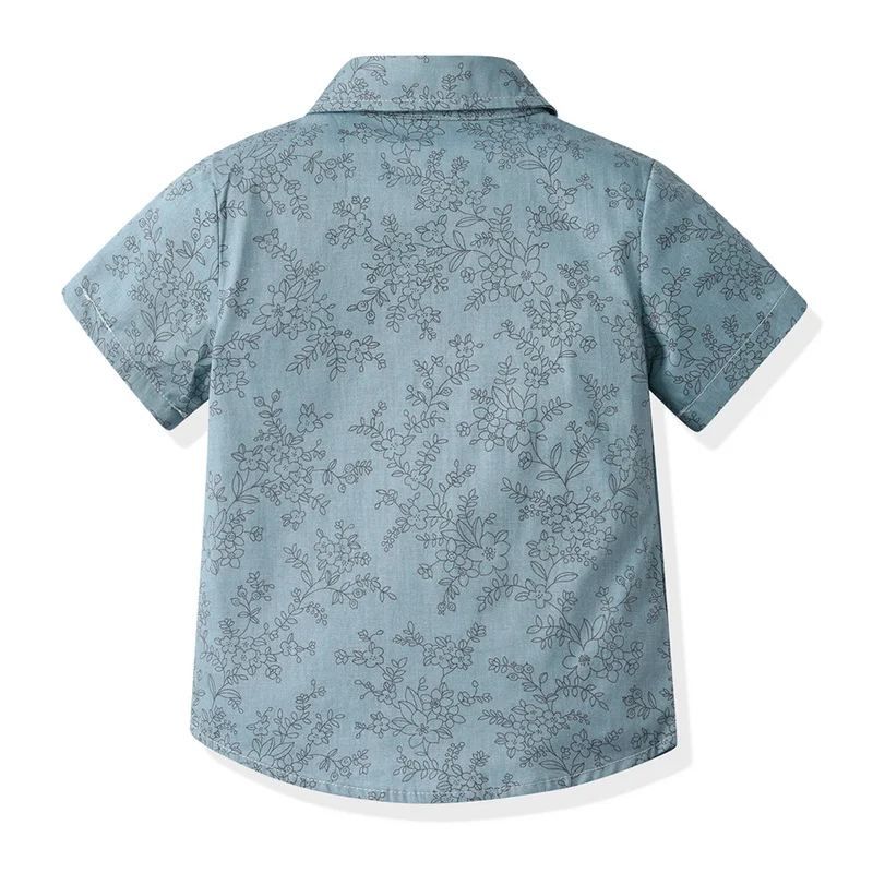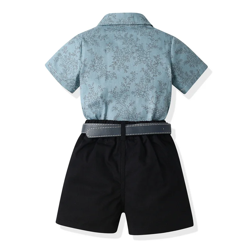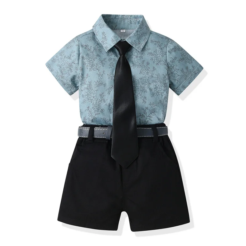 بلوزات وأعلى موضة صيفية للأطفال الأولاد ملابس رجالية مجموعات قمصان قصيرة الأكمام مطبوعة مع ربطة عنق + حزام السراويل الصبي الدعاوى الرسمية