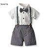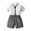 بلوزات وأعلى موضة صيف 2021 أطقم ملابس للأولاد الصغار قميص بأكمام قصيرة مع ربطة عنق + حمالات ملابس قصيرة