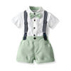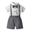 بلوزات وأعلى موضة صيف 2021 أطقم ملابس للأولاد الصغار قميص بأكمام قصيرة مع ربطة عنق + حمالات ملابس قصيرة