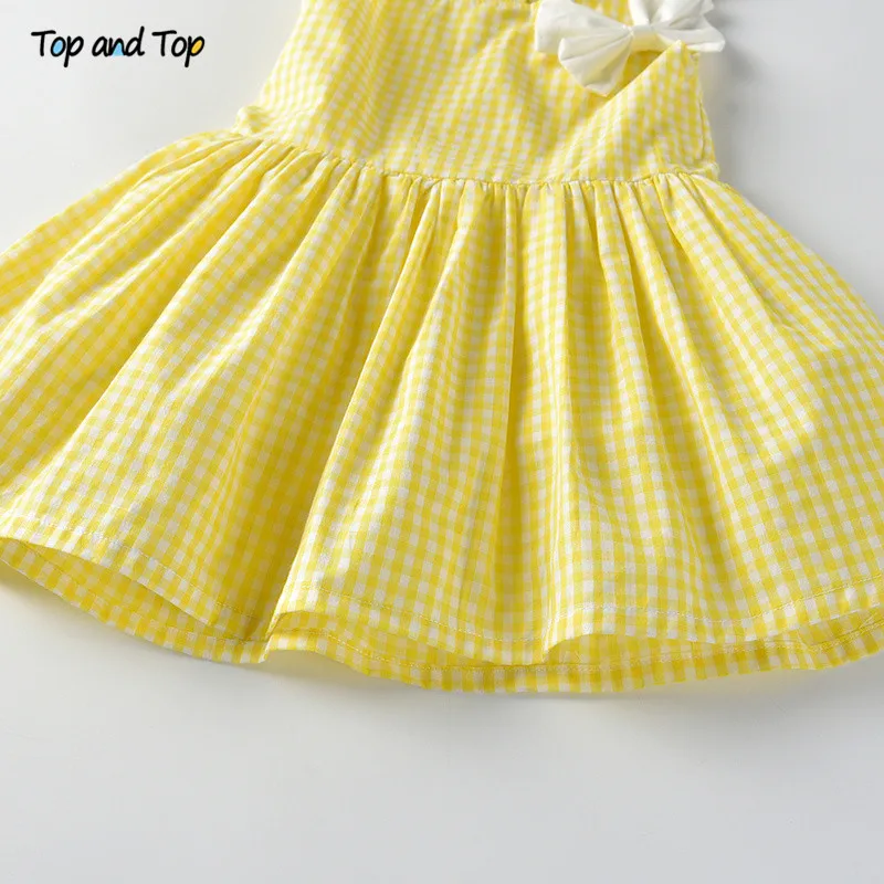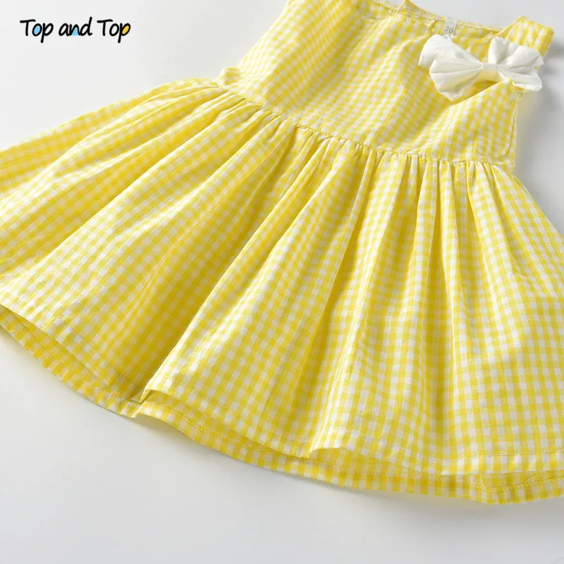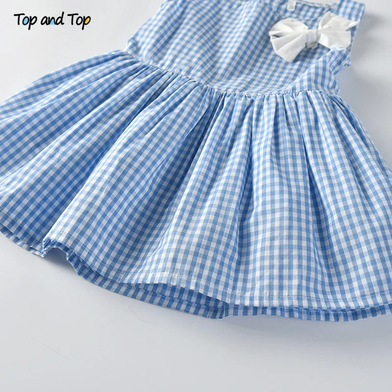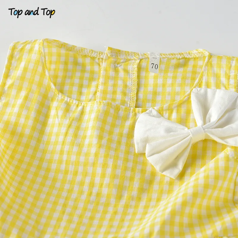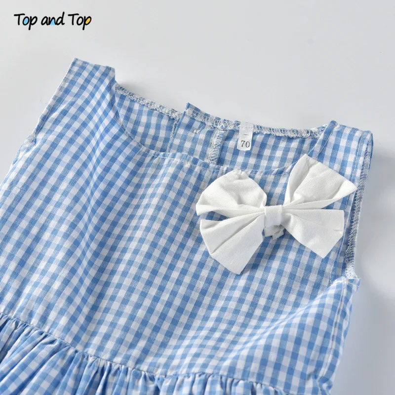 بلوزات وقمة موضة الأطفال الصيف فستان بلا أكمام غير رسمي رضع أطفال فتيات القطن منقوشة ألف خط Bowknot فستان لحفلات الزفاف توتو