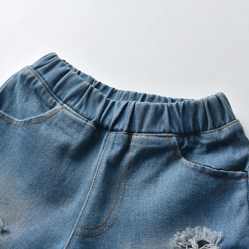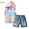 بلوزات و بلوزات الصيف الاطفال الفتيان الملابس مجموعة قصيرة الأكمام مقنعين أكمام التعادل مصبوغ التي شيرت ثقوب شورت جينز فتاة صغيرة الملابس