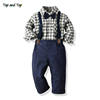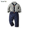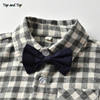 بلوزات و قمة الموضة مجموعة ملابس الأولاد الاطفال شهم دعوى طويلة الأكمام القطن ربطة منقوشة قميص بلايز وزرة الملابس وتتسابق