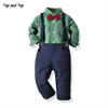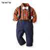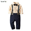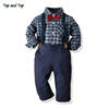 بلوزات و قمة الموضة مجموعة ملابس الأولاد الاطفال شهم دعوى طويلة الأكمام القطن ربطة منقوشة قميص بلايز وزرة الملابس وتتسابق
