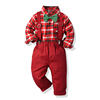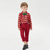 بلوزات و كبار الأطفال الفتيان شهم مجموعة ملابس طويلة الأكمام منقوشة ربطة قميص الحمالة السراويل وتتسابق الاطفال بدلة رسمية