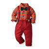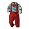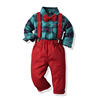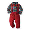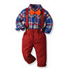 بلوزات و كبار الأطفال الفتيان شهم مجموعة ملابس طويلة الأكمام منقوشة ربطة قميص الحمالة السراويل وتتسابق الاطفال بدلة رسمية