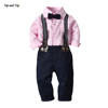 بلوزات و كبار موضة بنين شهم مجموعة ملابس قميص قطني بكم طويل قميص مع ربطة عنق + وزرة وتتسابق الدعاوى الاطفال الفتيان الملابس
