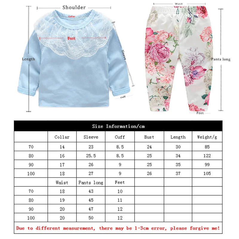 بلوزات Top طفل الفتيات ملابس الوليد طفل الفتيات ملابس الخريف القطن تي شيرت السراويل عقال طفلة الملابس مجموعة