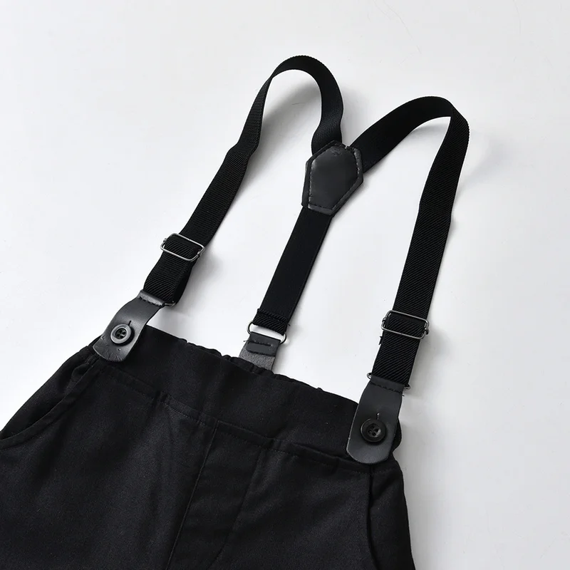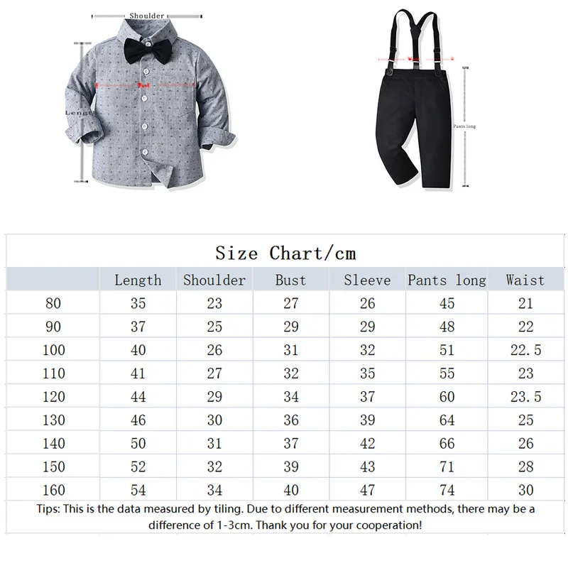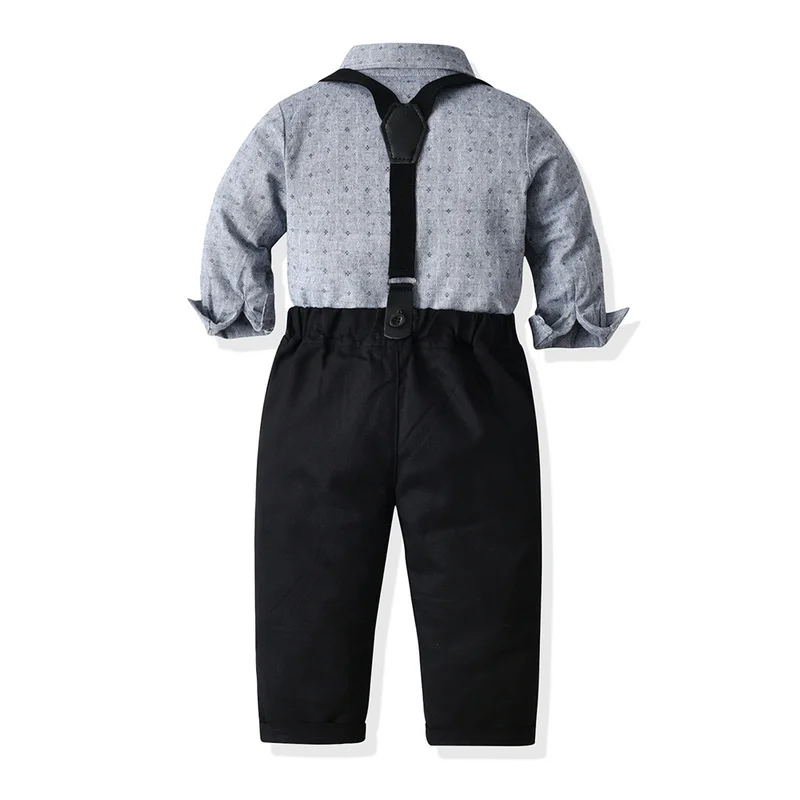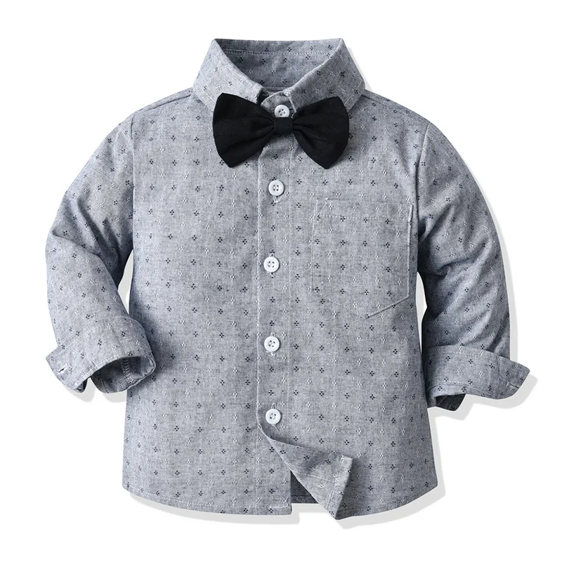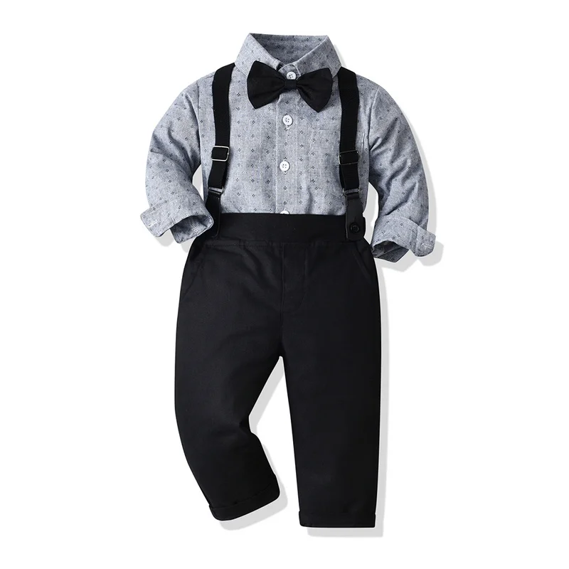 بلوزات top موضة جديدة ربيع الخريف الفتيان شهم مجموعة ملابس طويلة الأكمام ربطة قميص الحمالات السراويل وتتسابق غير رسمية