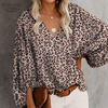بلوزة شاطئ زهري غير رسمية ملابس أنيقة بنقشة الفهد للربيع قبة على شكل حرف v قميص مناسب للعطلات مطبوع فانوس كم طويل ملابس علوية 19150