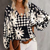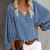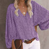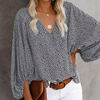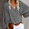 بلوزة شاطئ زهري غير رسمية ملابس أنيقة بنقشة الفهد للربيع قبة على شكل حرف v قميص مناسب للعطلات مطبوع فانوس كم طويل ملابس علوية 19150