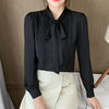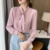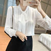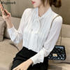 بلوزة شيفون أنيقة مع شريط دانتيل موضة خريف 2021 كم طويل بلوزة شيفون كورية فضفاضة قميص نسائي 16629
