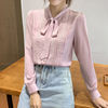 بلوزة شيفون أنيقة مع شريط دانتيل موضة خريف 2021 كم طويل بلوزة شيفون كورية فضفاضة قميص نسائي 16629