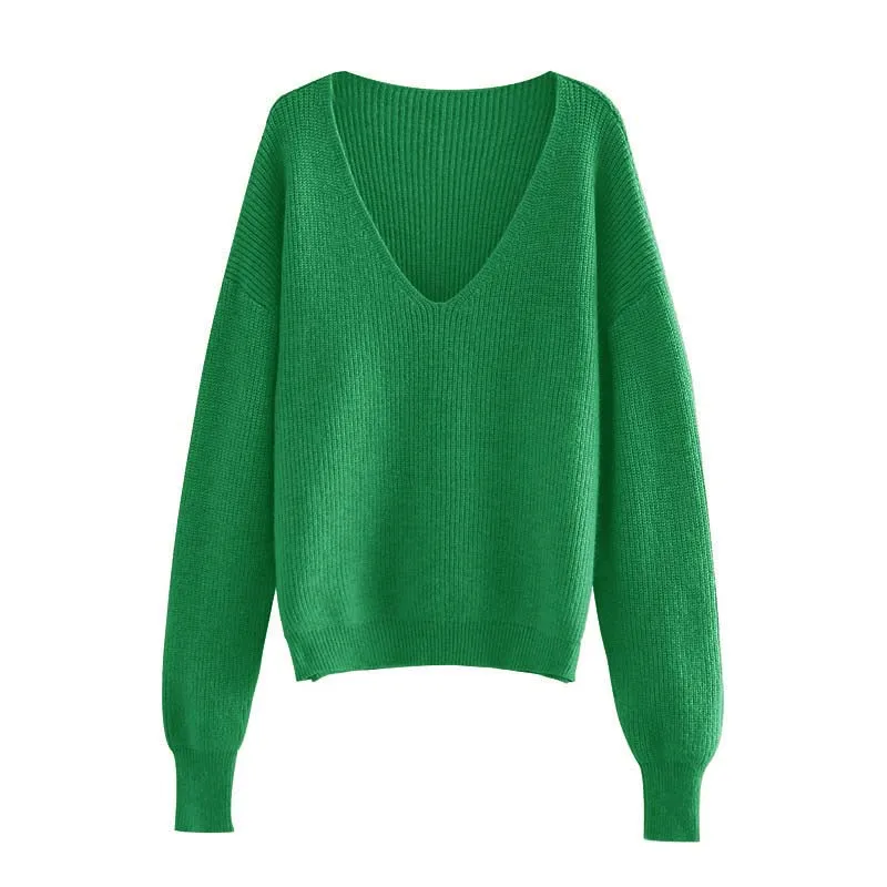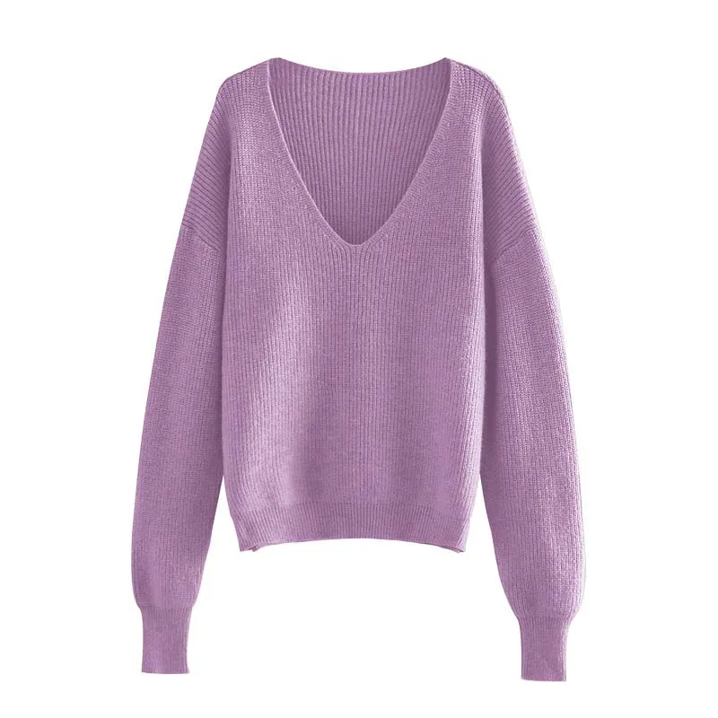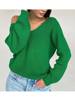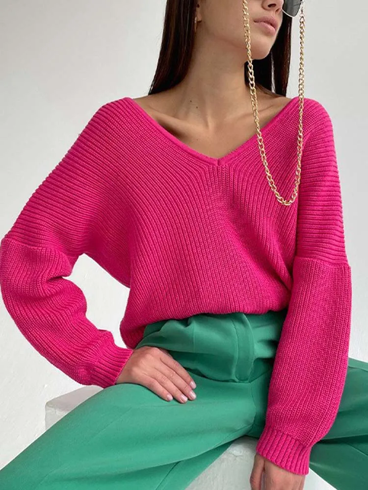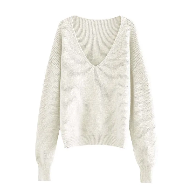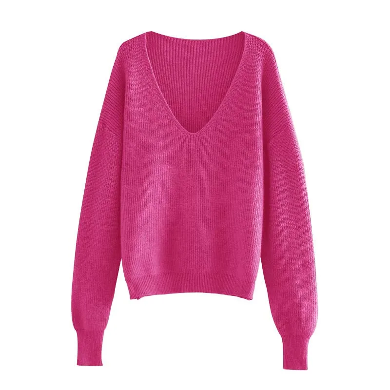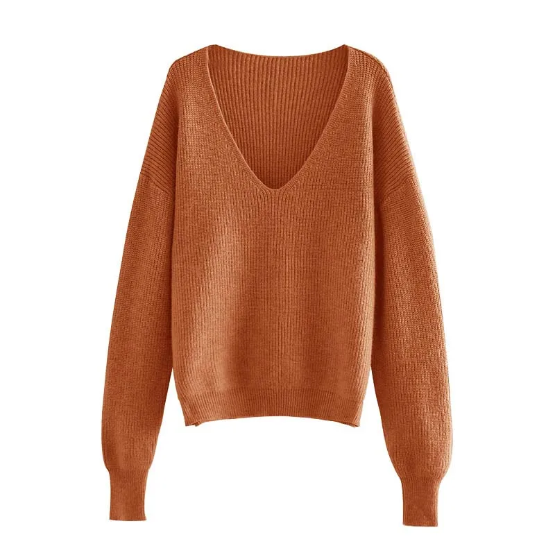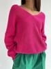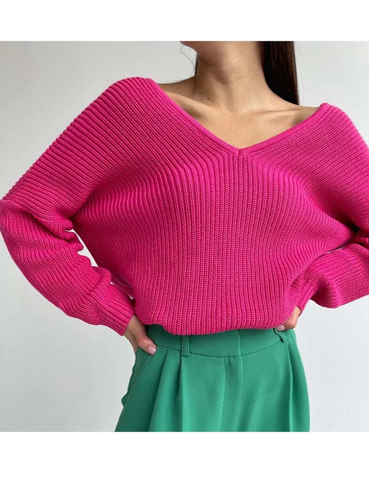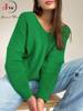 بلوفر نسائي فضفاض برقبة على شكل V موضة خريف وشتاء أساسي محبوك بلوفر سادة أنيق ناعم غير رسمي سترة نسائية