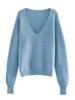 بلوفر نسائي فضفاض برقبة على شكل V موضة خريف وشتاء أساسي محبوك بلوفر سادة أنيق ناعم غير رسمي سترة نسائية