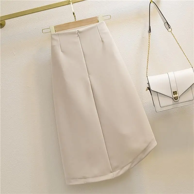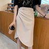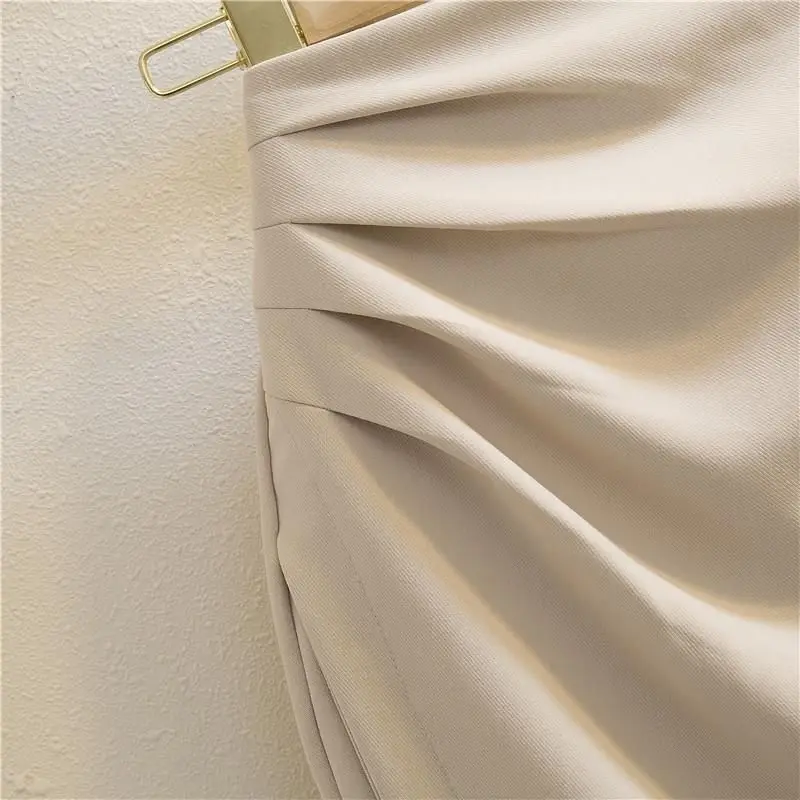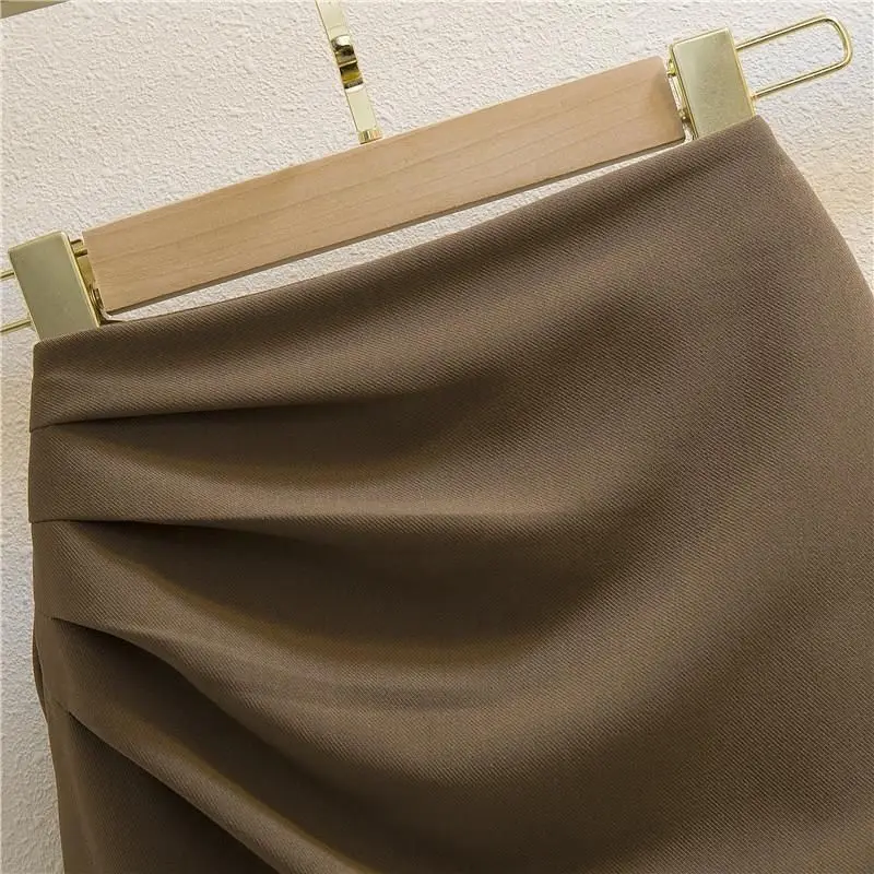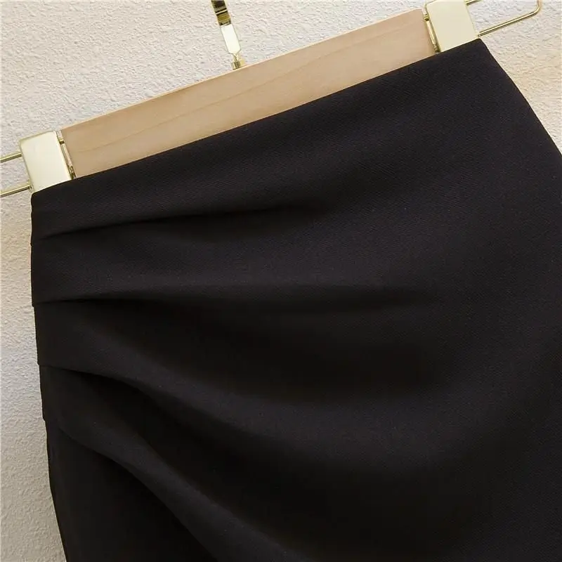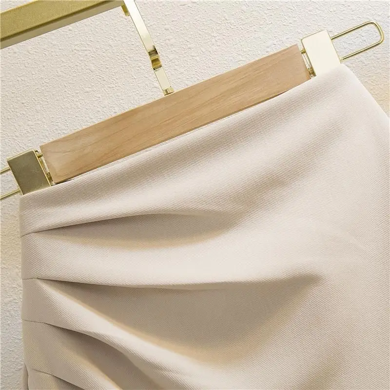تنورات نسائية صيفية ربيعية غير منتظمة عالية الخصر ضيقة على الموضة بطيات جانبية ومنقوشة تنورة متوسطة الطول تنورات نسائية أنيقة للعمل المكتبي