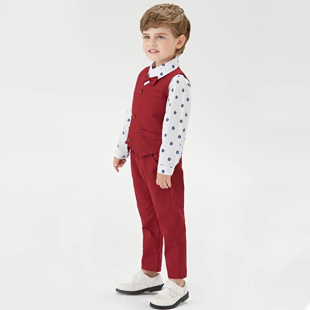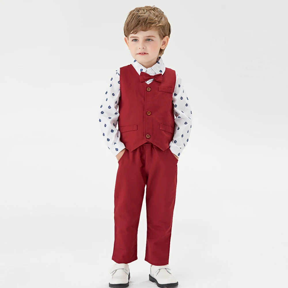 توب و توب ماركة فاخرة طفل بنين ملابس قطنية ربطة القوس فيونكة بلايز + بنطلون + سترة السترة مجموعة ملابس كاجوال الاطفال ازياء الزفاف