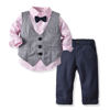 توب و توب موضة أولاد مجموعة ملابس قطنية ربطة القوس فيونكة بلايز + وزرة + صدرية جنتلمان 3 قطعة ملابس أطفال بوي ملابس كاجوال طقم