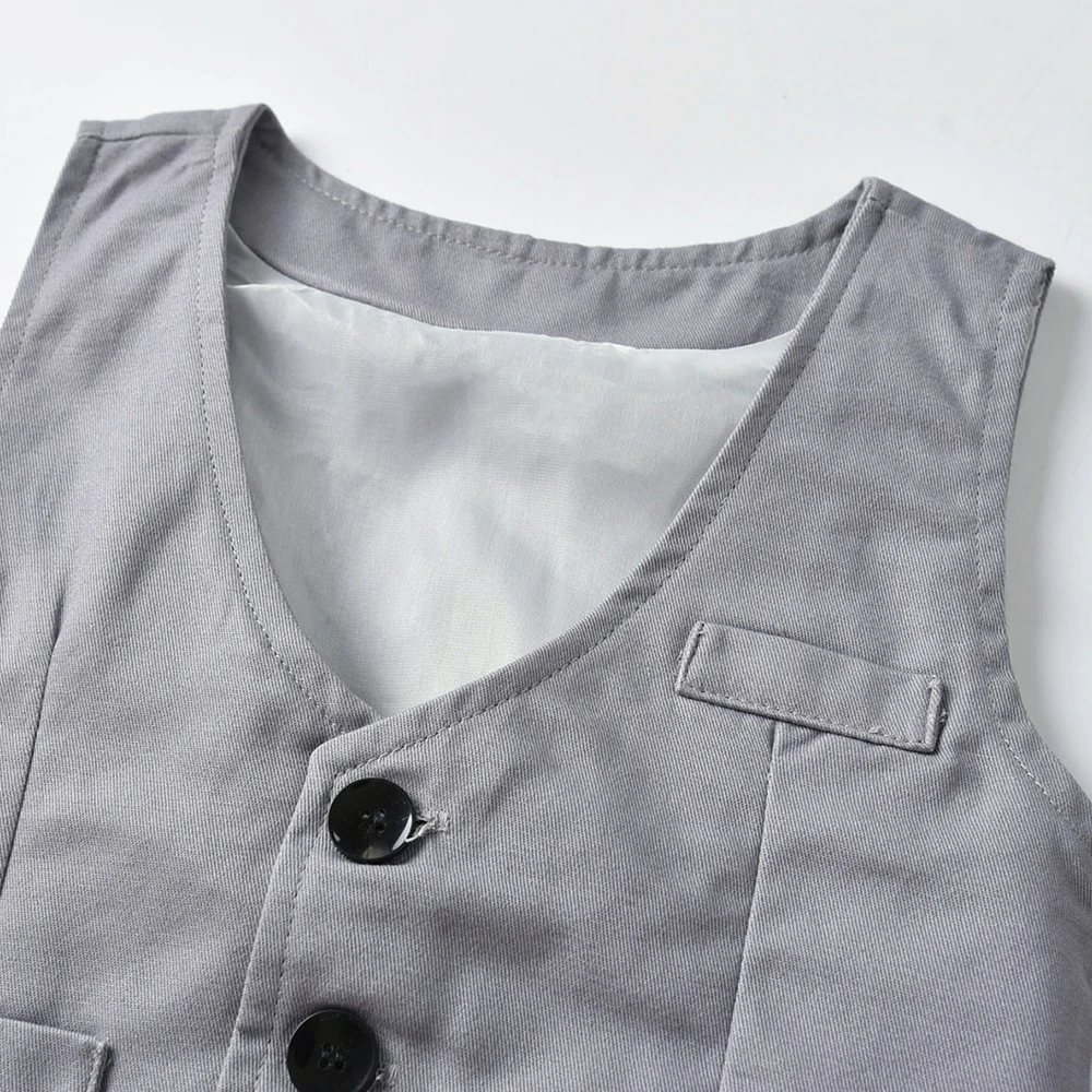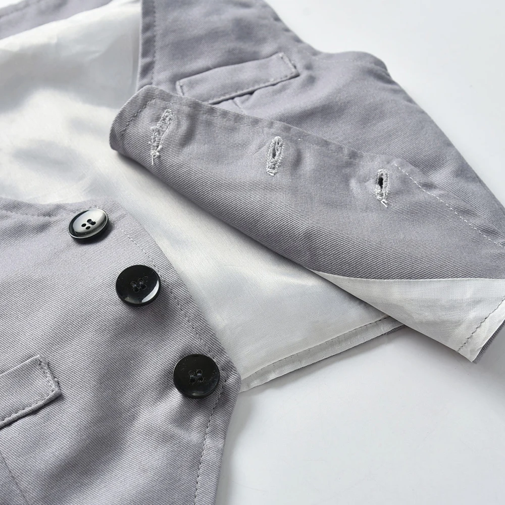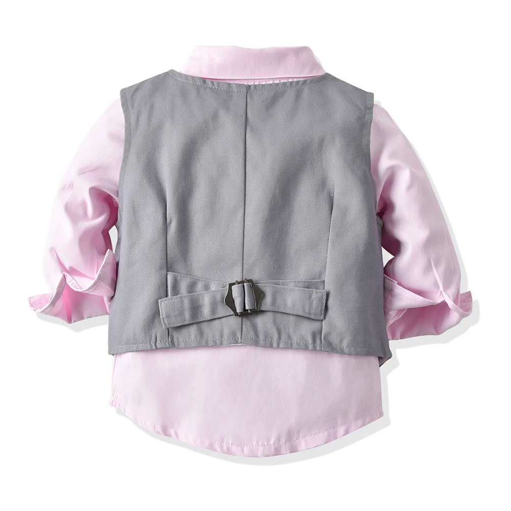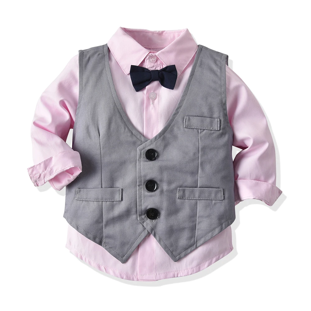 توب و توب موضة أولاد مجموعة ملابس قطنية ربطة القوس فيونكة بلايز + وزرة + صدرية جنتلمان 3 قطعة ملابس أطفال بوي ملابس كاجوال طقم