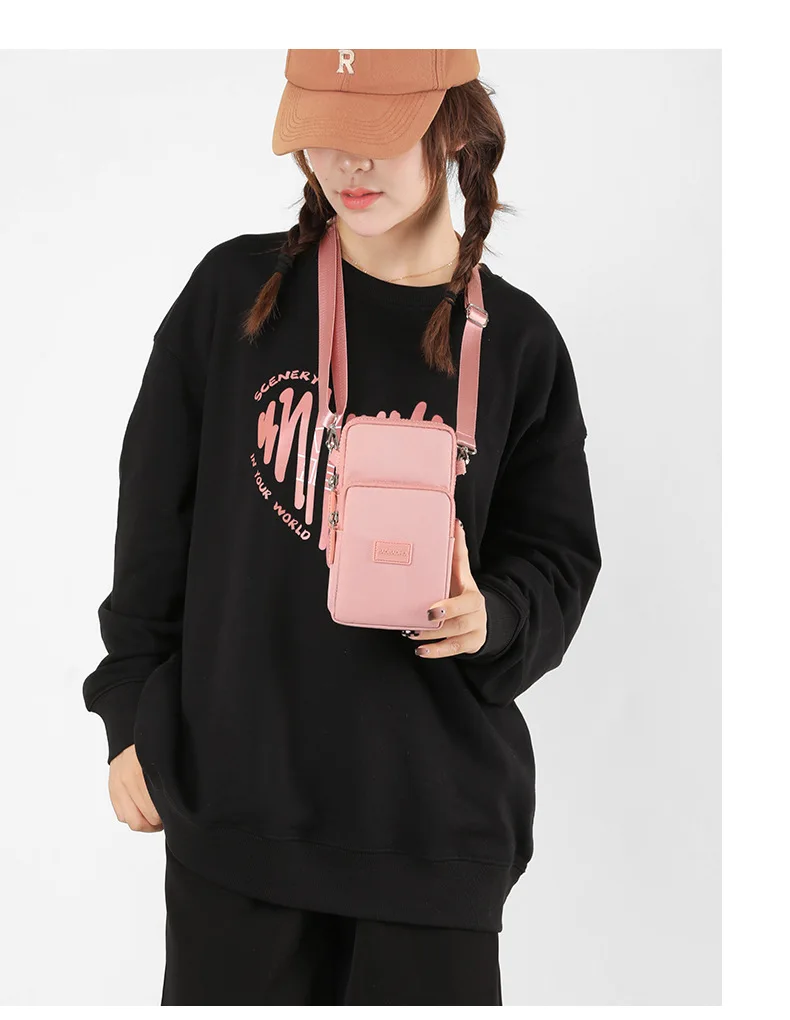 جديد المرأة حقيبة الهاتف المحمول النايلون الهاتف الخليوي حقيبة عملة محفظة حزام الكتف حقيبة صغيرة Crossbody حقائب للنساء محفظة السفر محفظة