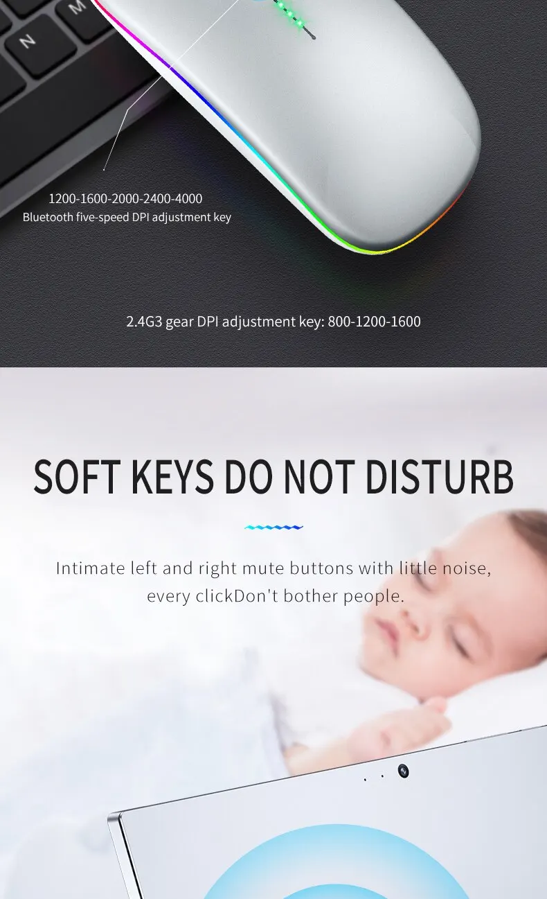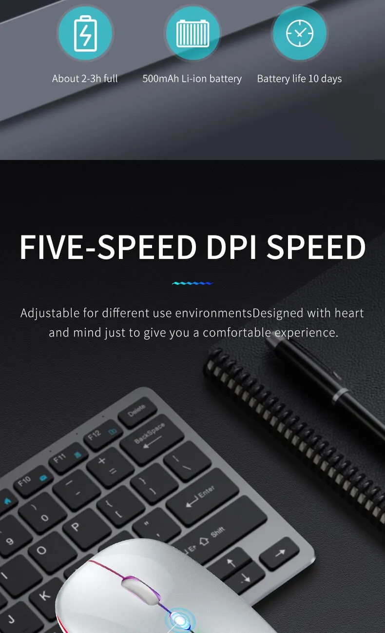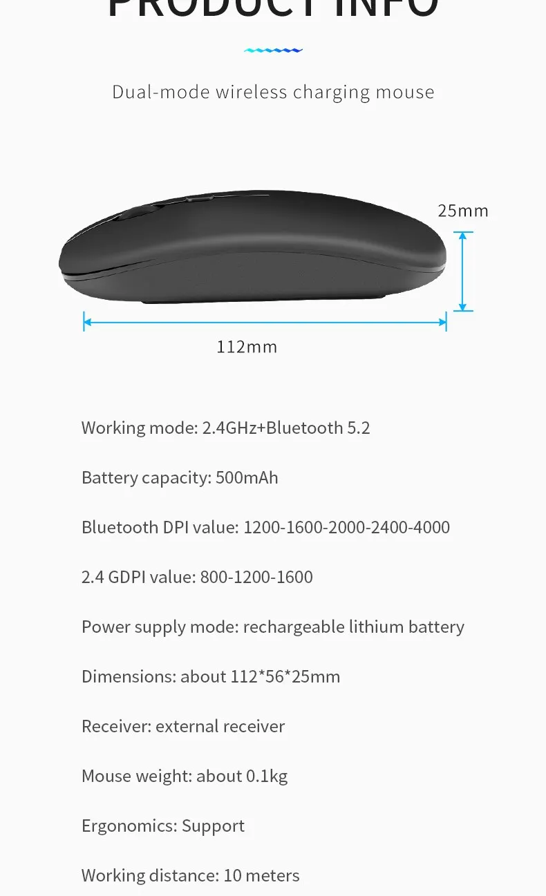• بطارية قابلة للشحن :لا حاجة لاستبدال البطاريات باستمرار ، ببساطة إعادة شحن الماوس للاستخدام الممتد.