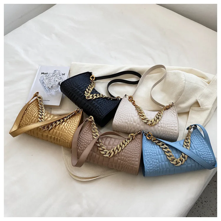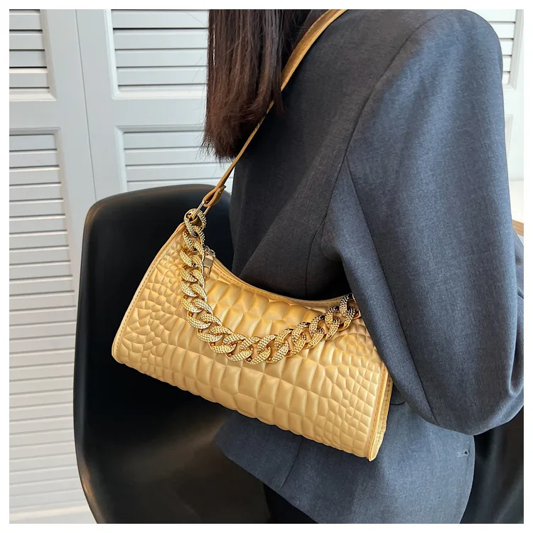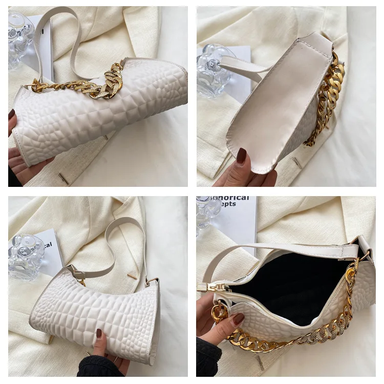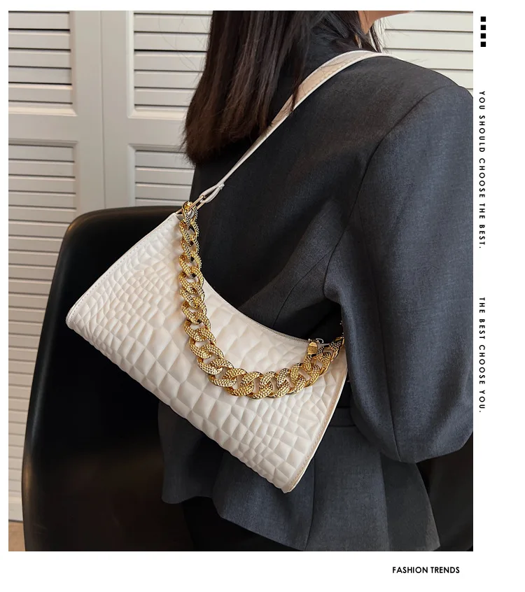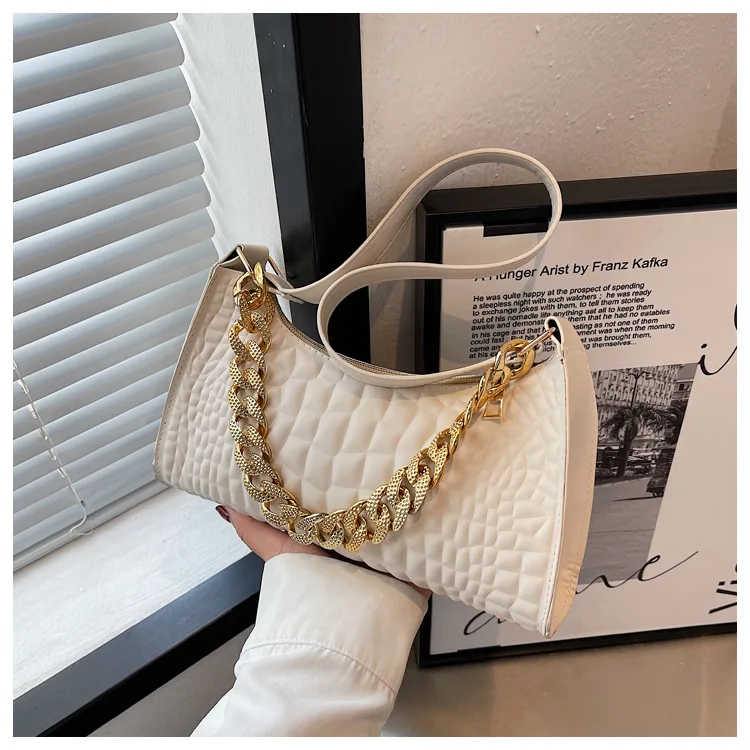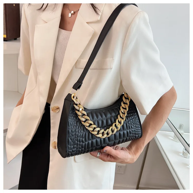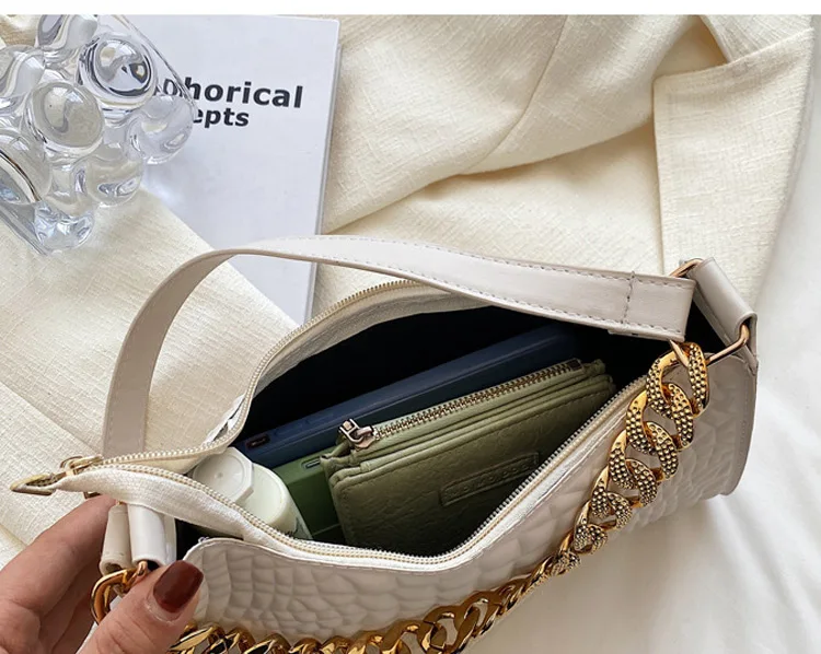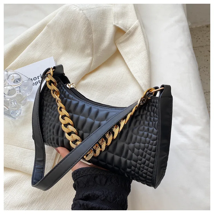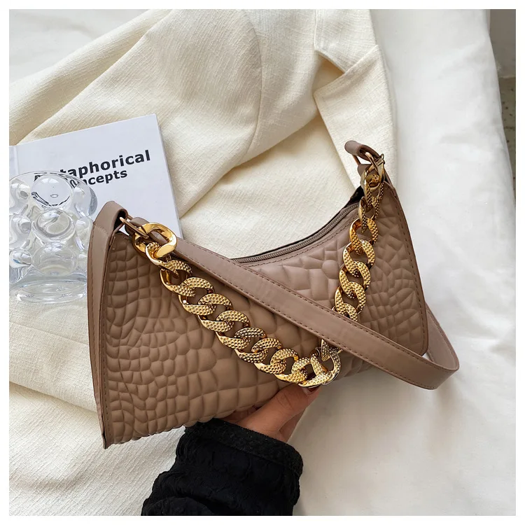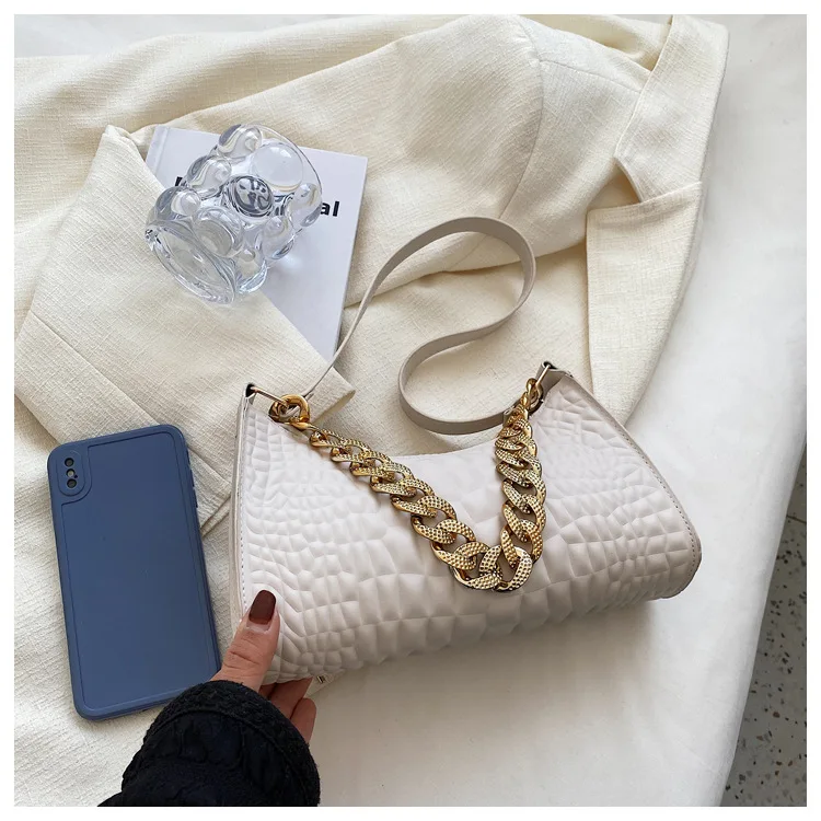 جديد سلسلة حقيبة كتف حقائب الموضة مصمم حقائب تحت الإبط للنساء عادية الصلبة بولي Leather حقائب جلدية المرأة