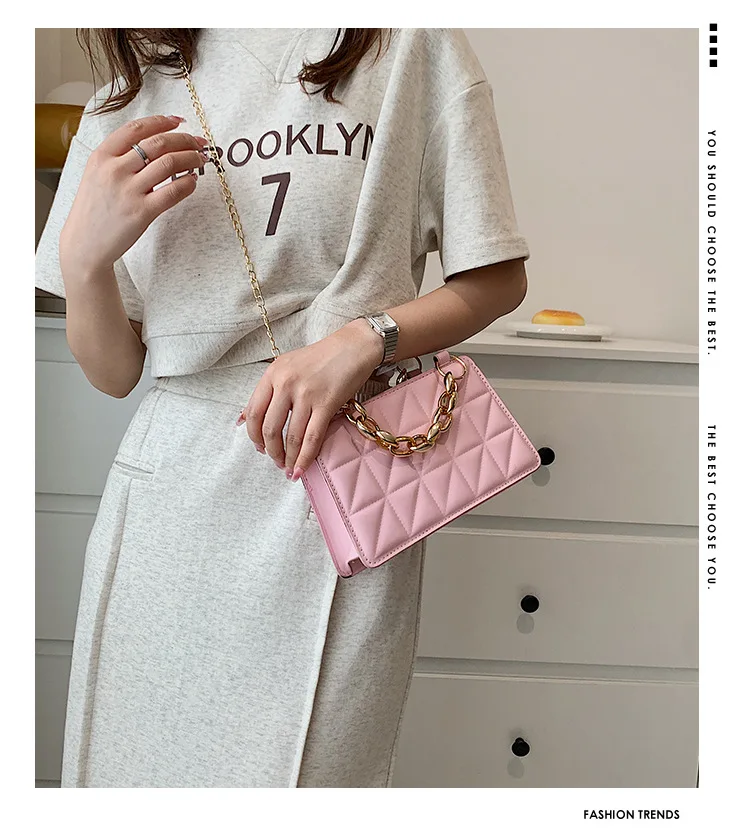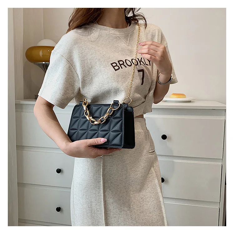 جديد عصري سلسلة حقائب كروسبودي للنساء منقوشة مربع الإناث حقيبة كتف مصمم سيدة حقائب اليد والمحافظ