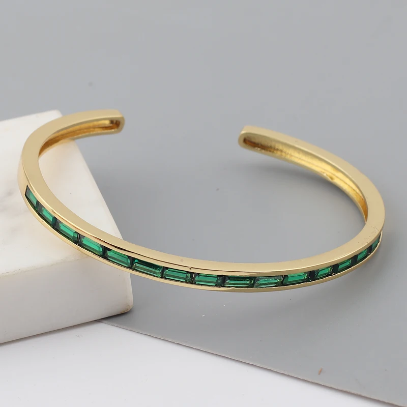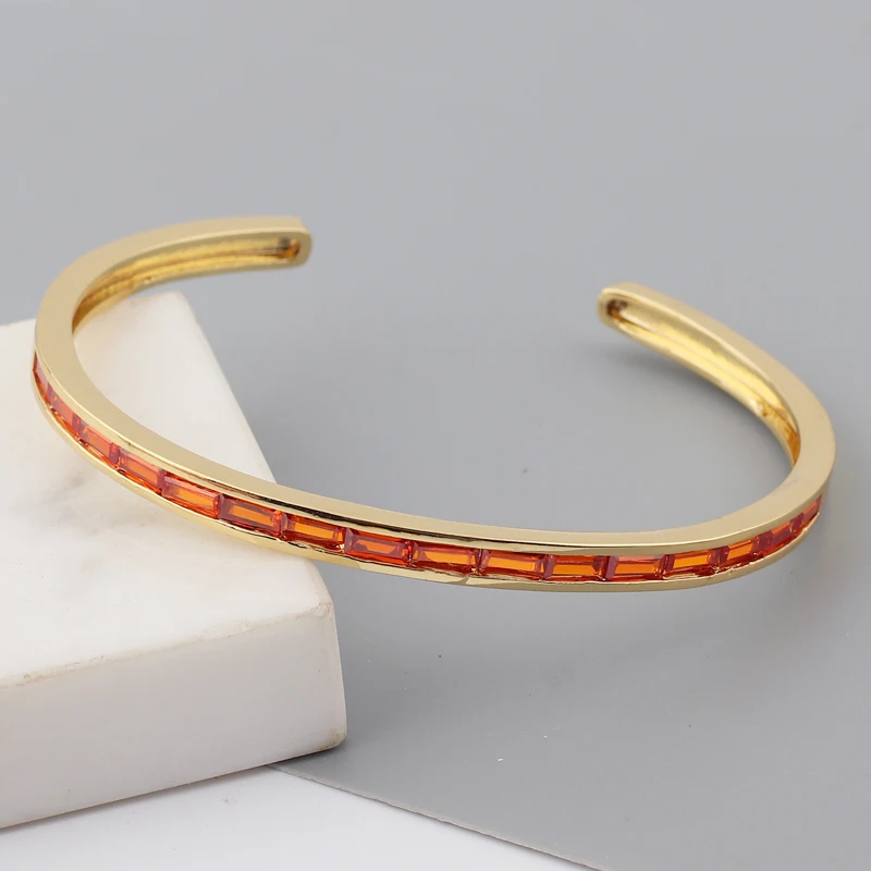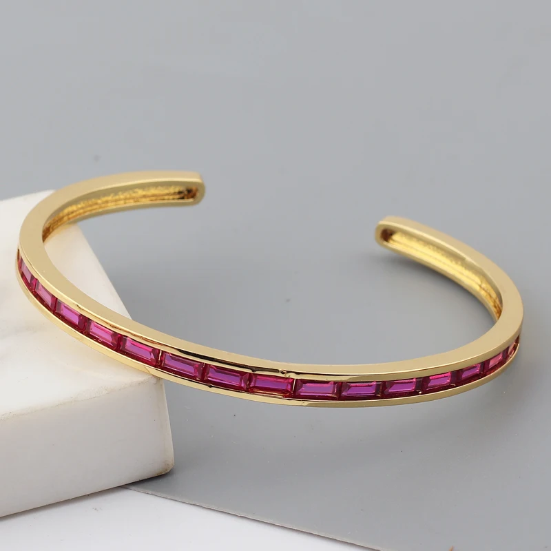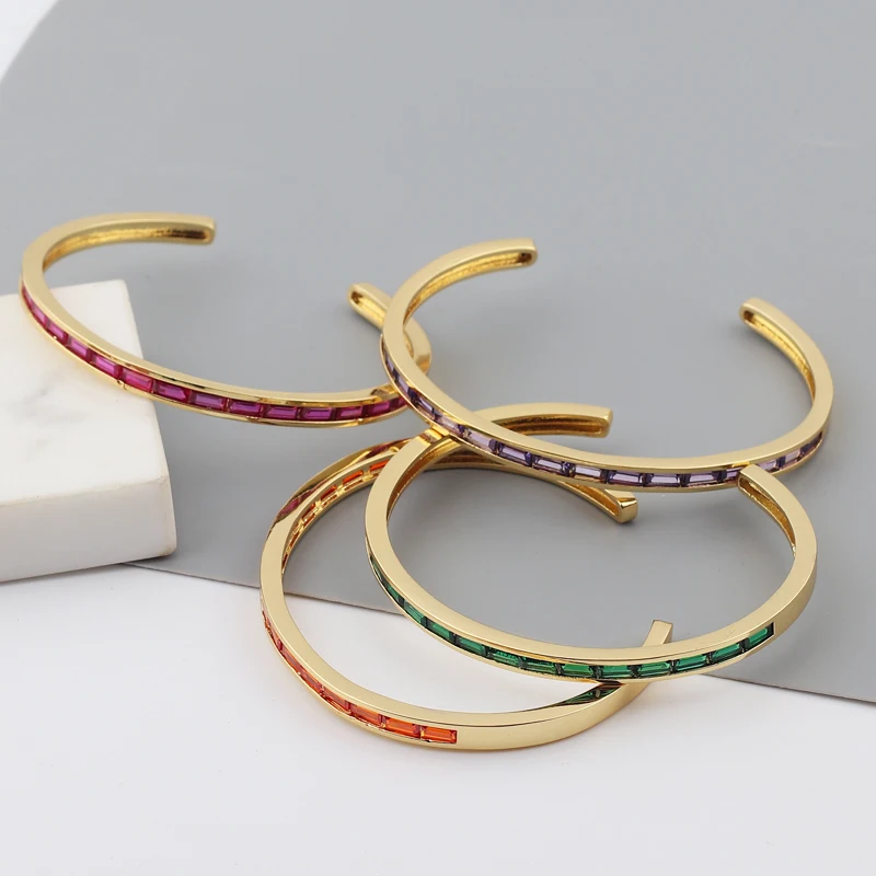 جديد وصول الفاخرة قوس قزح كريستال أساور للنساء 18K مطلية بالذهب مكعب الزركون المفتوحة الكفة الإسورة أساور مجوهرات بالجملة